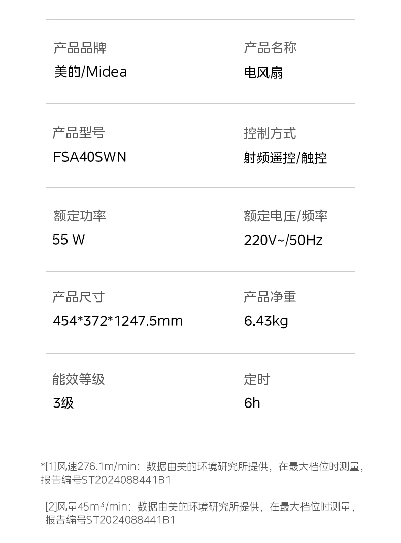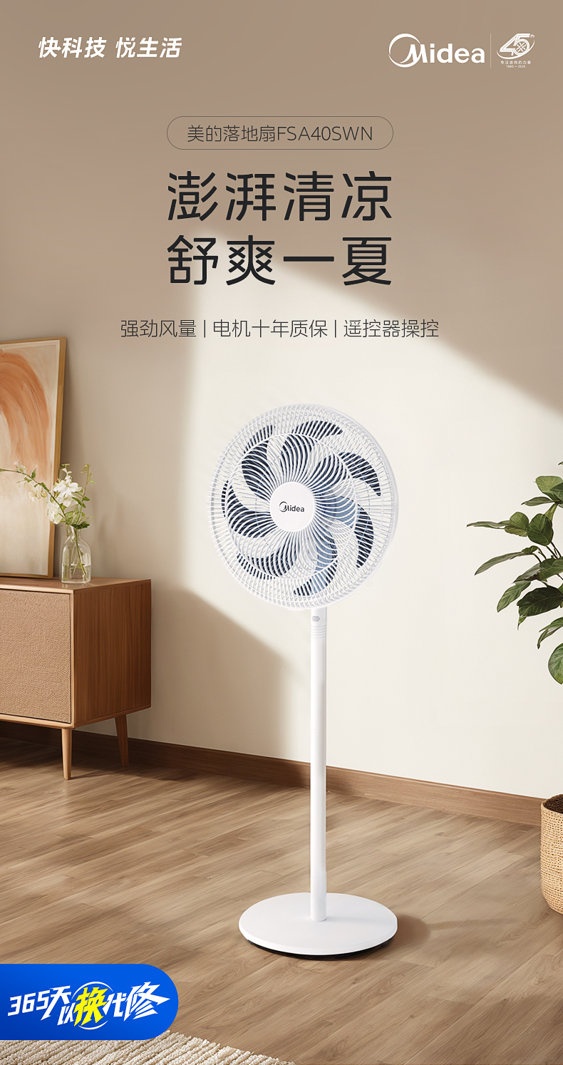 美的(Midea) FSA40SWN 7叶 风扇遥控式落地扇 白色(单位:台)