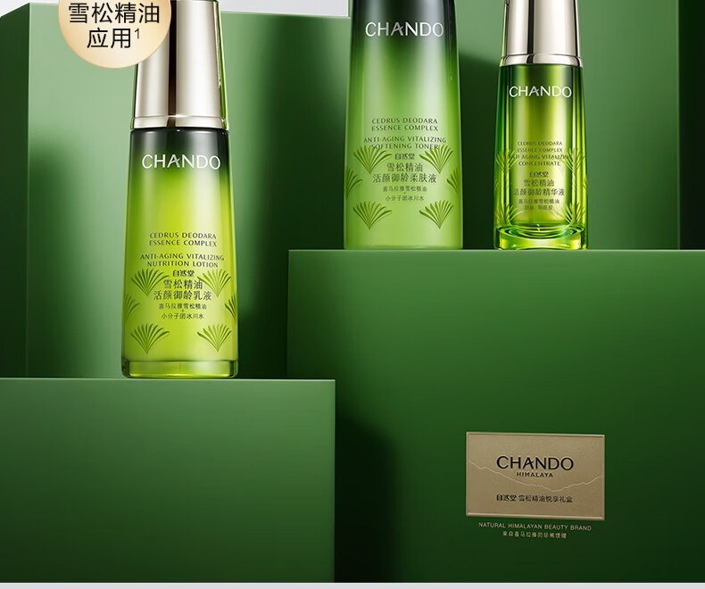 自然堂(CHANDO) 雪松精油活颜御龄奢宠礼盒(单位:套) 绿色