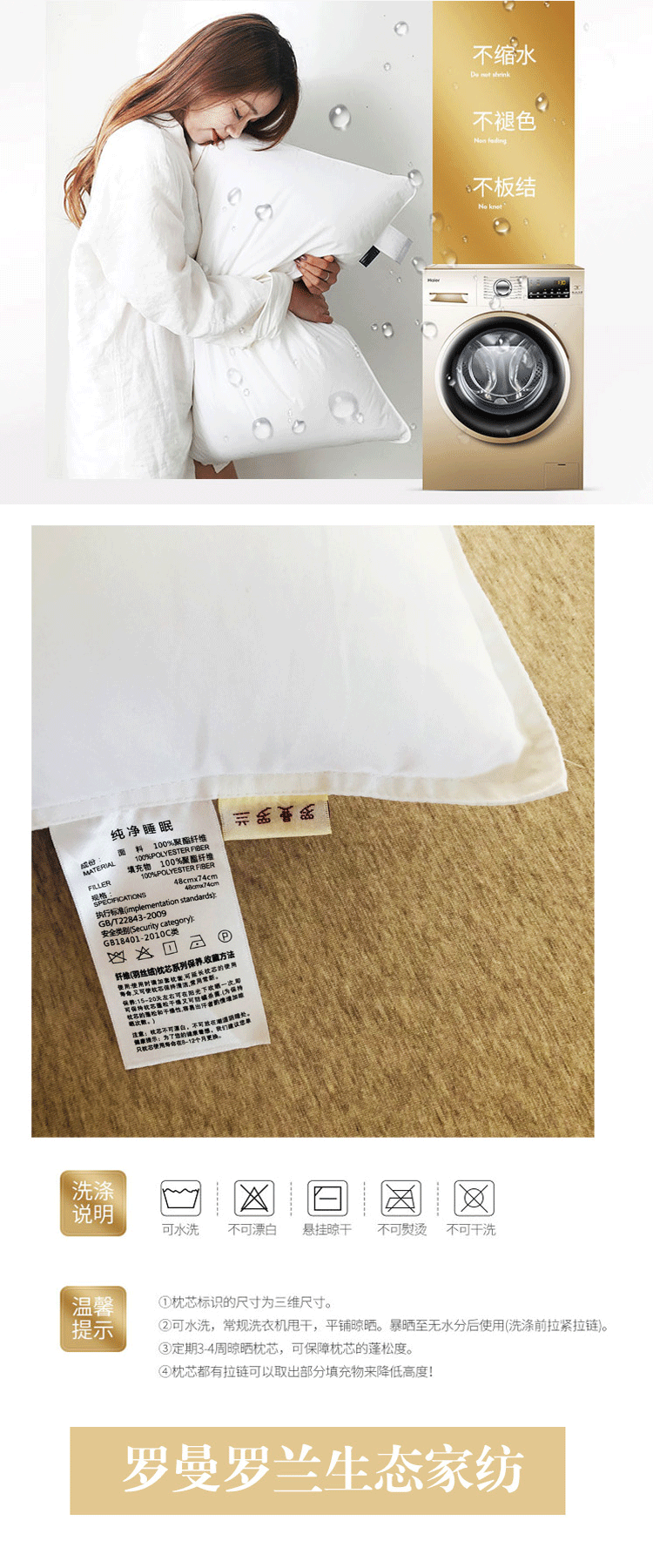 罗曼罗兰 48*74cm纯净睡眠枕 个 白色