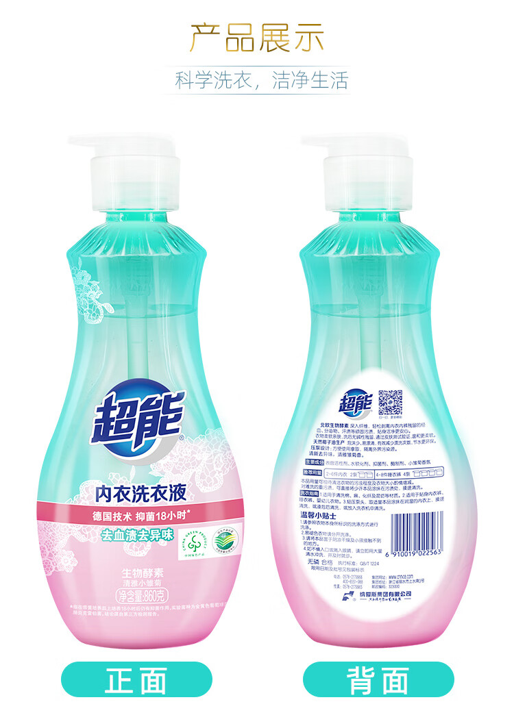 超能 长效抑菌 860g/瓶 长效抑菌内衣专用 粉绿色(单位:瓶)