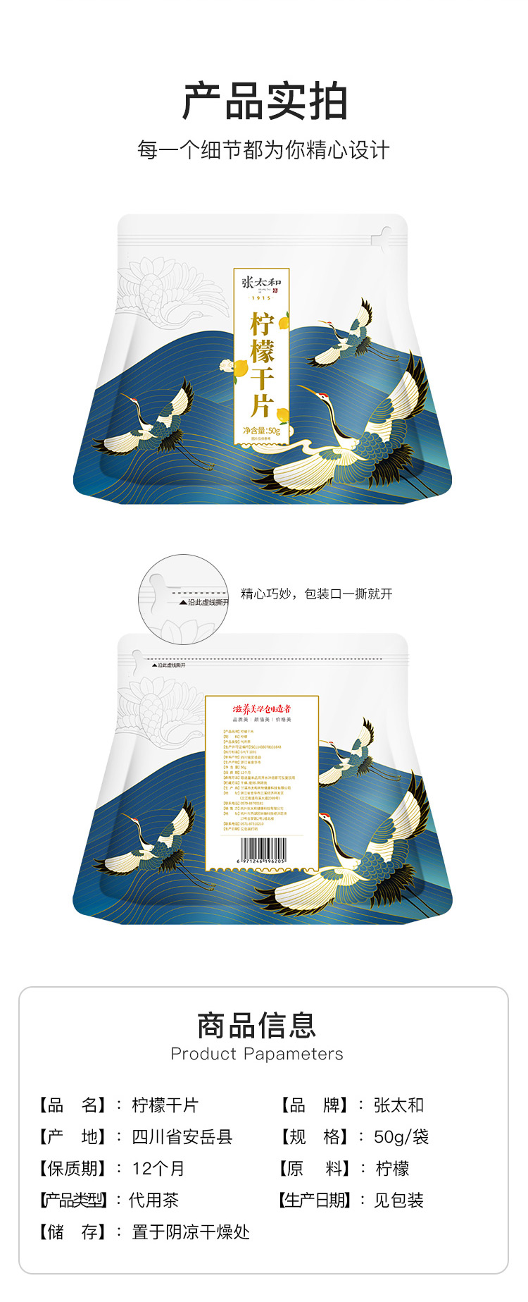 张太和始创于1915 柠檬干片50g/袋柠檬片泡茶即食泡水切片花草茶饮柠水柠檬水干片袋装 白色