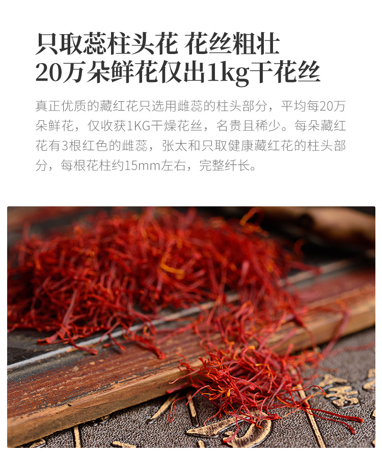 张太和 伊朗进口西红花3克/瓶 藏红花全红长丝 手工精选番红花 白色
