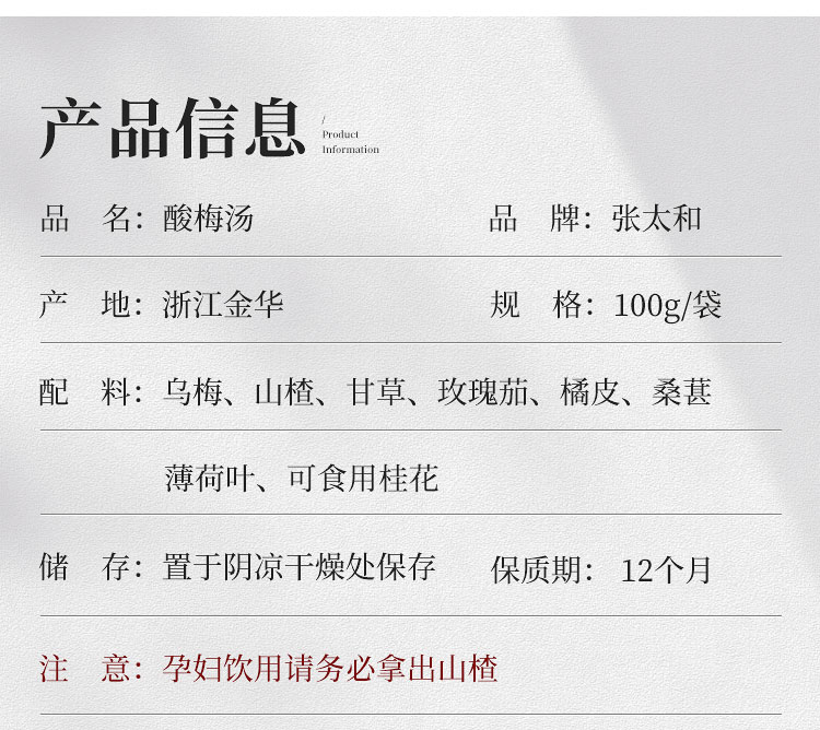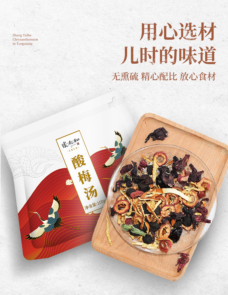 张太和 酸梅汤100g/袋装 乌梅山楂橘皮茶包酸梅汤原料包夏季解渴饮品 3袋装 无色