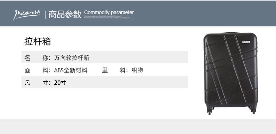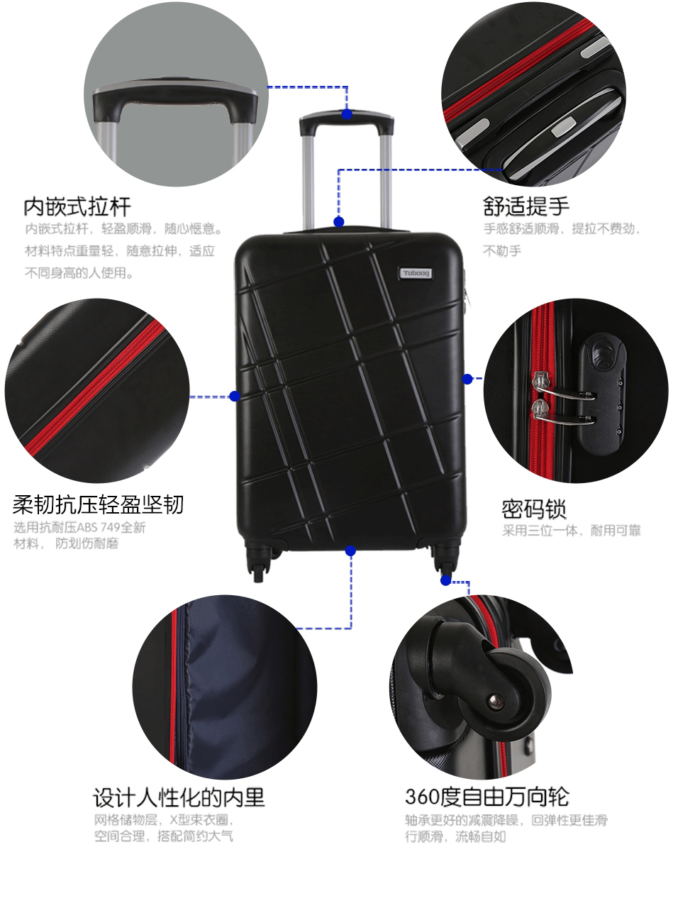 TOBOOG\/途帮登机箱万向轮时尚男女拉杆箱上学出游商务旅行箱 20寸(单位;个) 黑色
