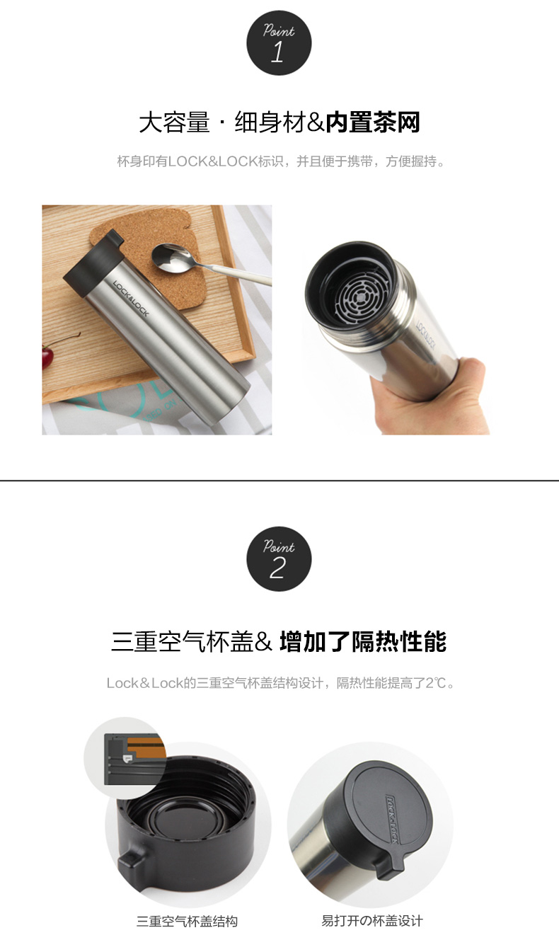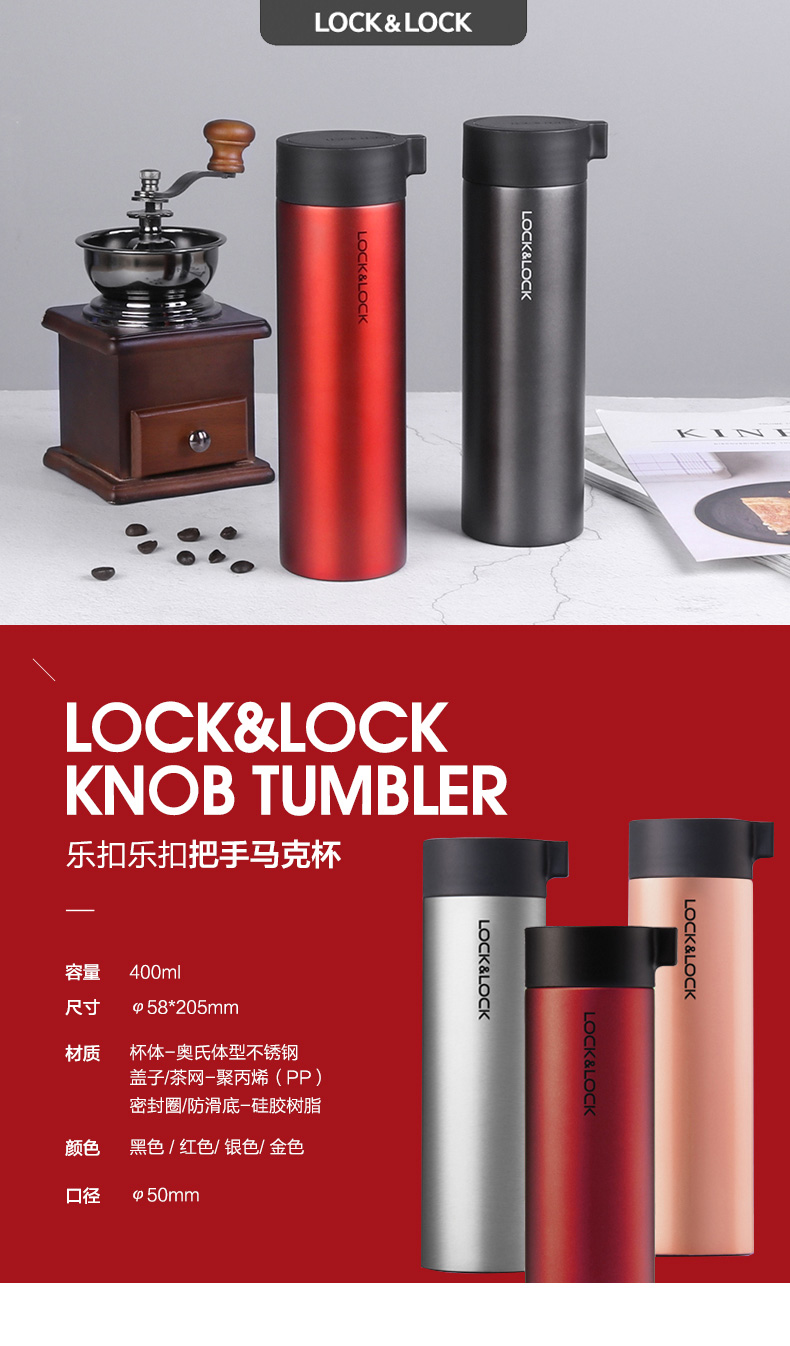 乐扣乐扣(Lock&Lock) 把手马克杯LHC4121(400ml)个 金色