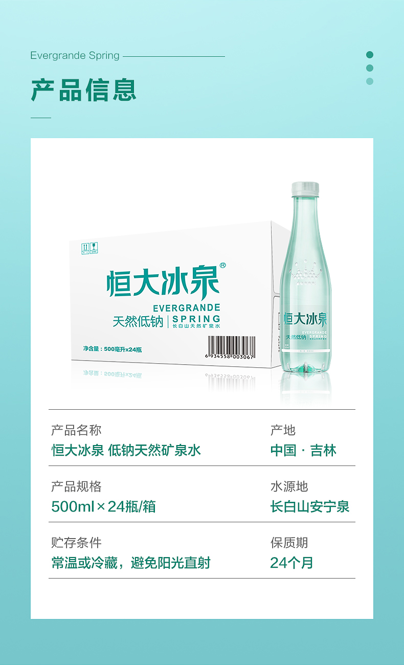 恒大冰泉长白山天然矿泉水500ml*24瓶 低钠弱碱性饮用水 整箱装 500ml*24瓶 整箱装 500ML*24瓶