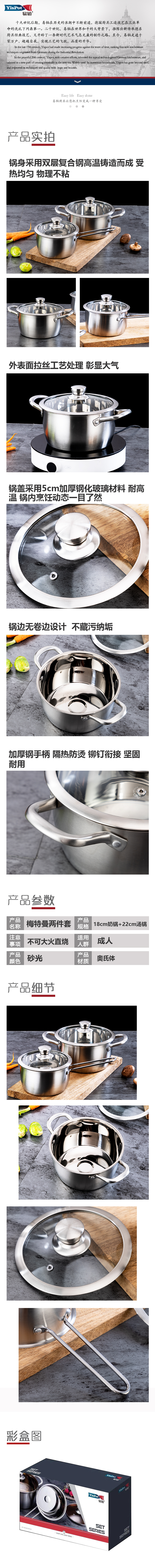 【yispot易铂】梅特曼两件套锅16cm奶锅+20cm汤锅奥氏体不锈钢YP-8011 不锈钢色