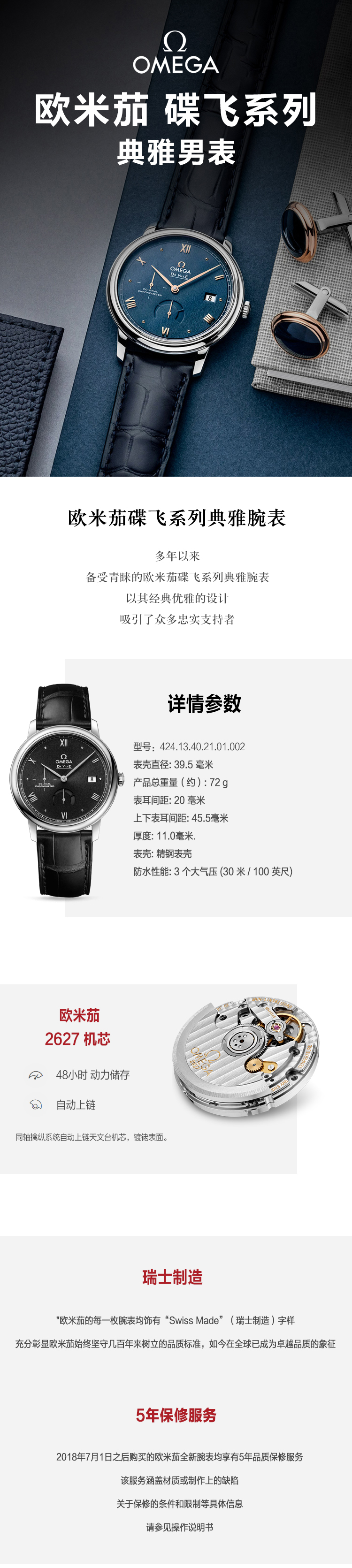 OMEGA欧米茄 碟飞典雅系列同轴动力储存显示机械男表424.13.40.21.01.002 黑色