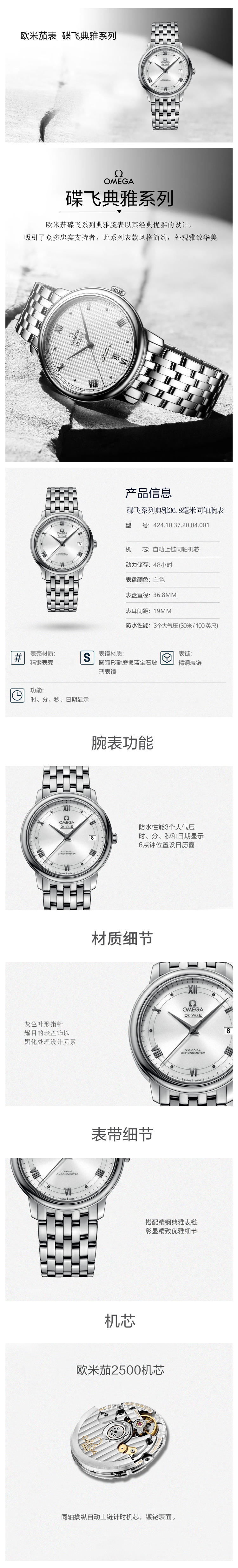 OMEGA欧米茄 碟飞典雅系列同轴机械男女表36.8mm 424.10.37.20.04.001 白色