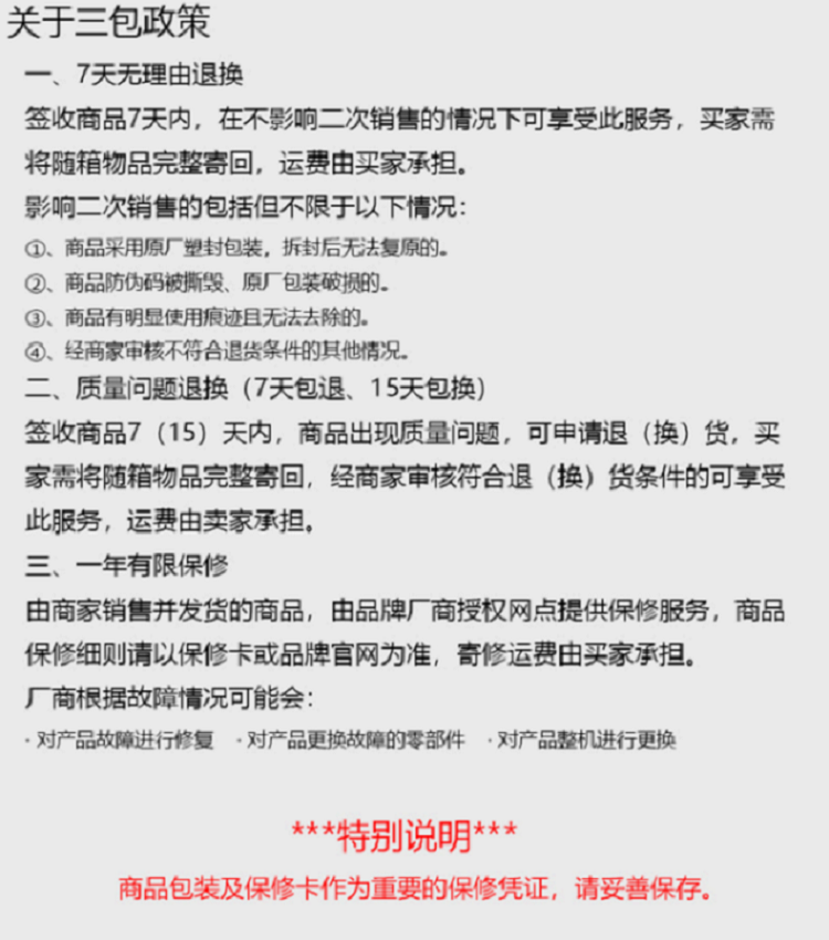 7天无理由退货