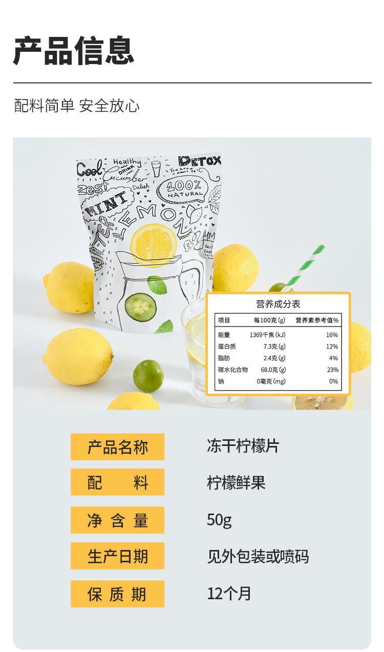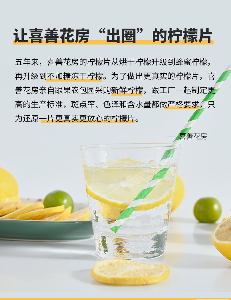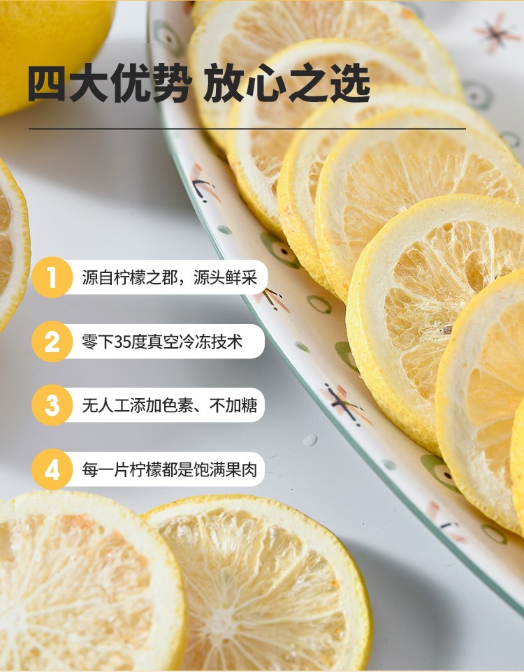 喜善花房冻干柠檬片泡茶无不加糖冻干柠檬泡水即食孕妇女团水果茶喜善花房冻干柠檬片50g/袋*2 本白色