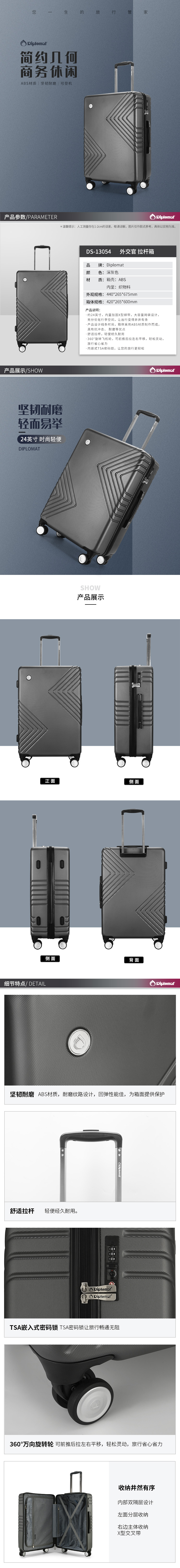 Diplomat外交官拉杆箱DS-13054(单位:只) 深灰色 24寸