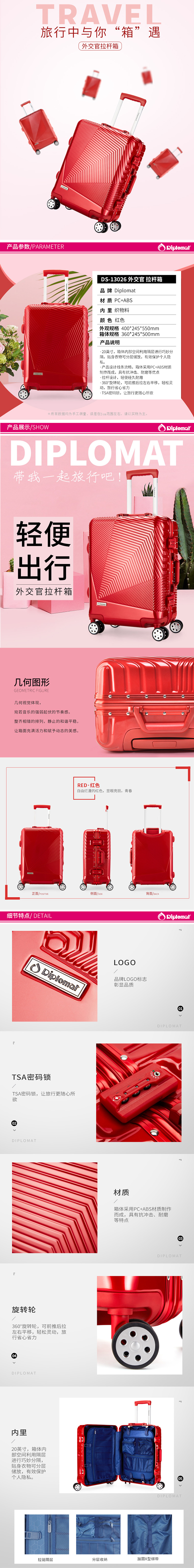 Diplomat外交官拉杆箱(铝框)DS-13026(单位:只) 红色 20寸