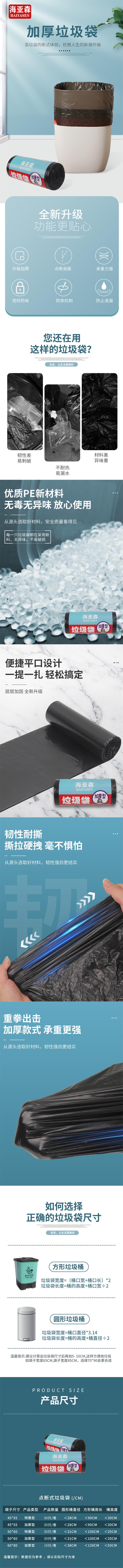 海亚森(HAIYASEN) TK-8004 50cm*60cm 加厚型垃圾袋 30只/卷 黑色