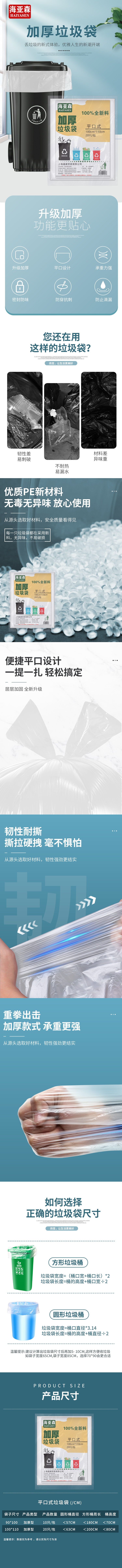 海亚森(HAIYASEN) TK-8015 加厚型垃圾袋 白色100cm*110cm 20只/包 白色