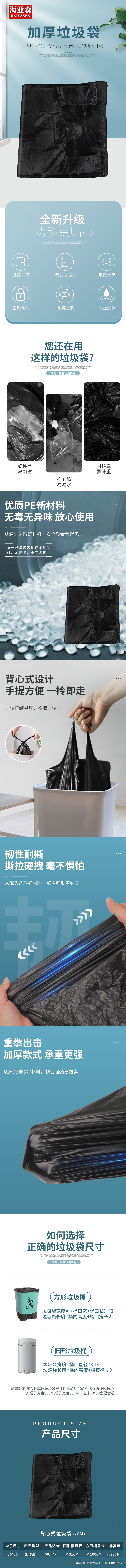 海亚森(HAIYASEN) TK-8016 背心式垃圾袋 黑色36cm*56cm50只/包 黑色