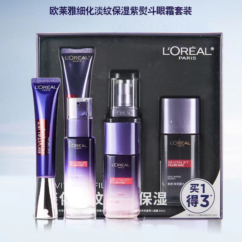 欧莱雅复颜玻尿酸水光充盈全脸淡纹眼霜眼霜30ML+乳液50ML+晶露65ML 紫色