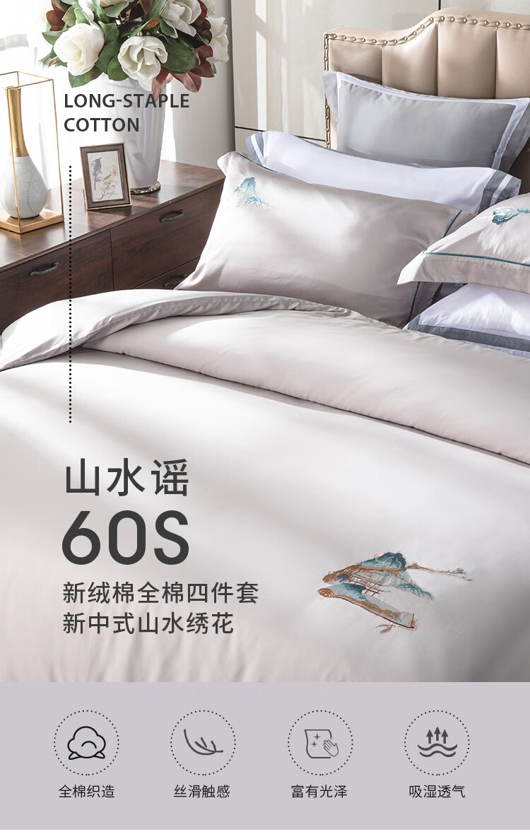 多喜爱-60支长绒棉四件套 山水谣 203*229cm 灰色