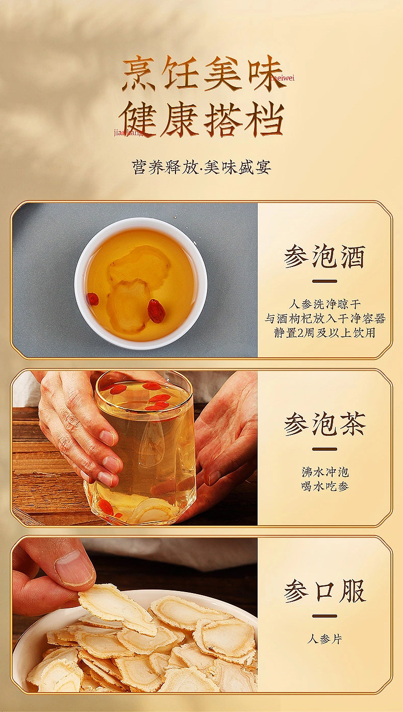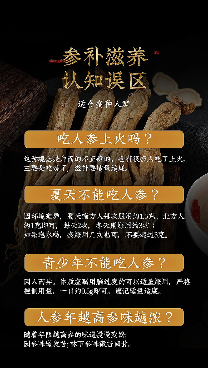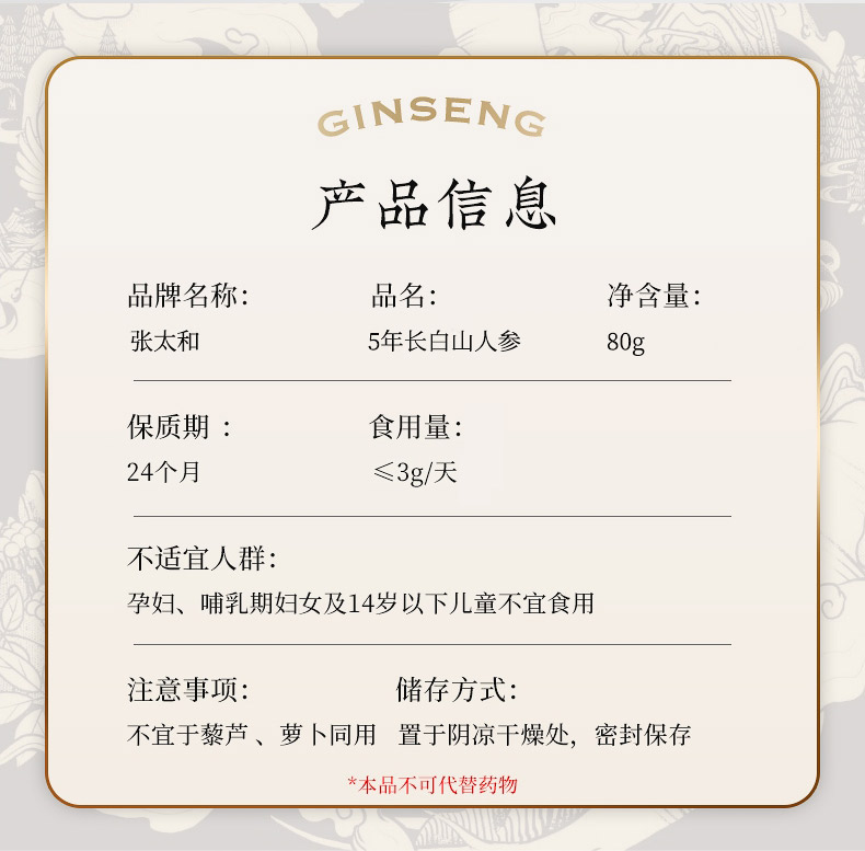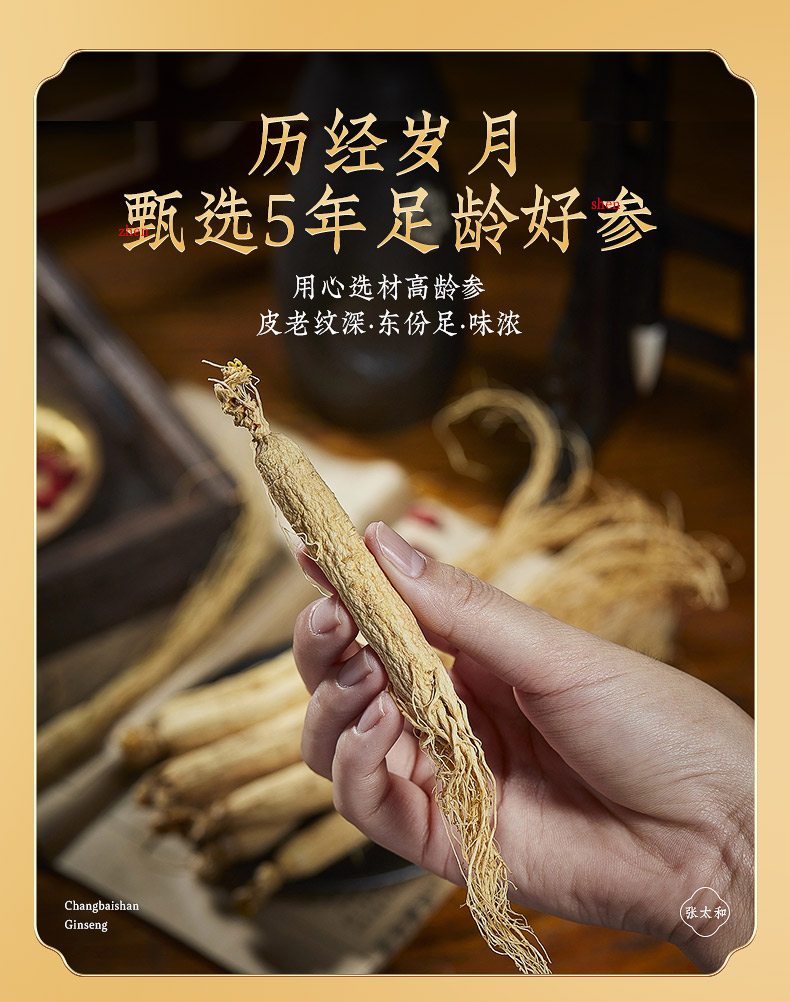张太和 5年全须生晒参整枝年份足 礼品健康煲汤煮粥泡酒材料 5年全须生晒参大规格装 80克(约6-8支)