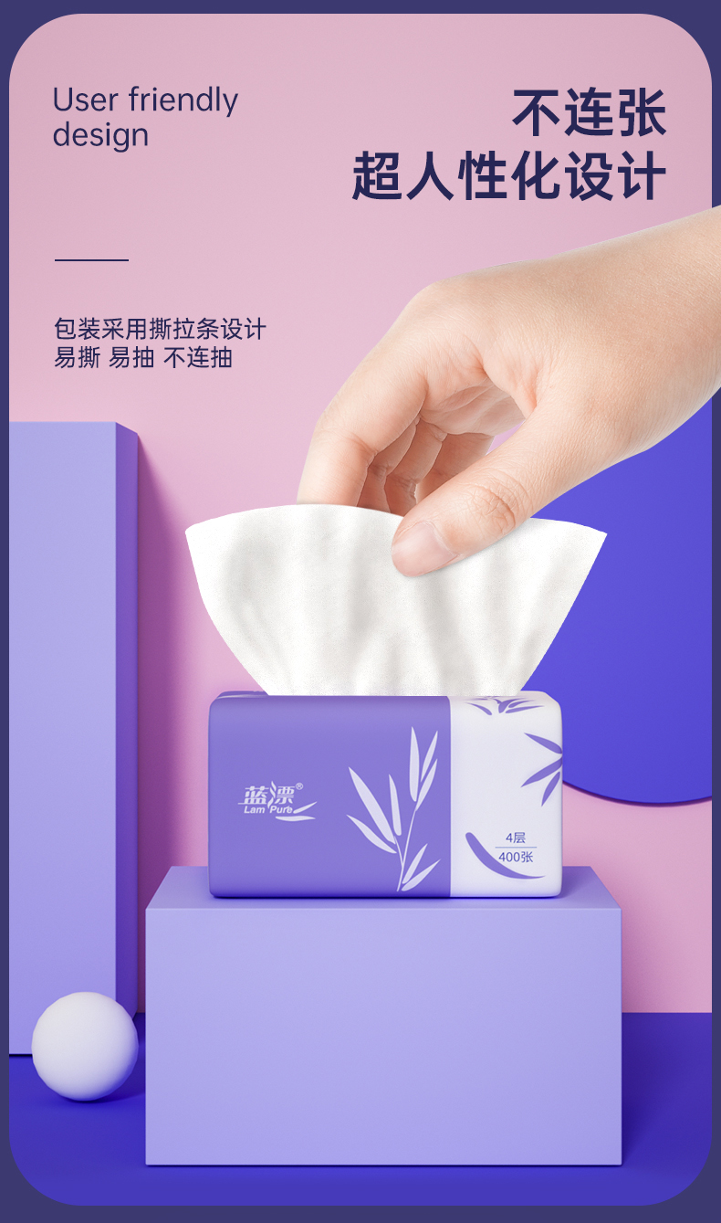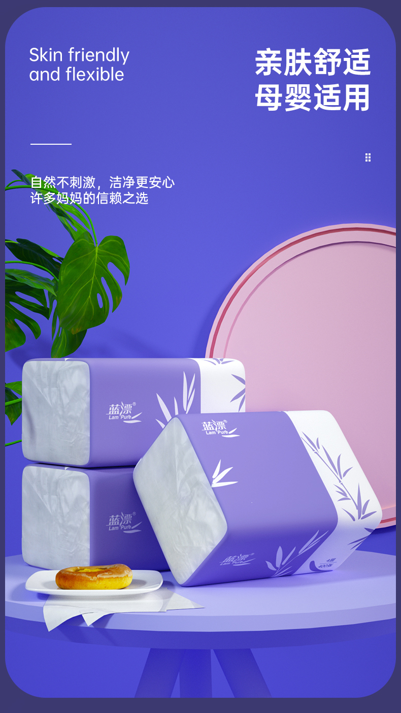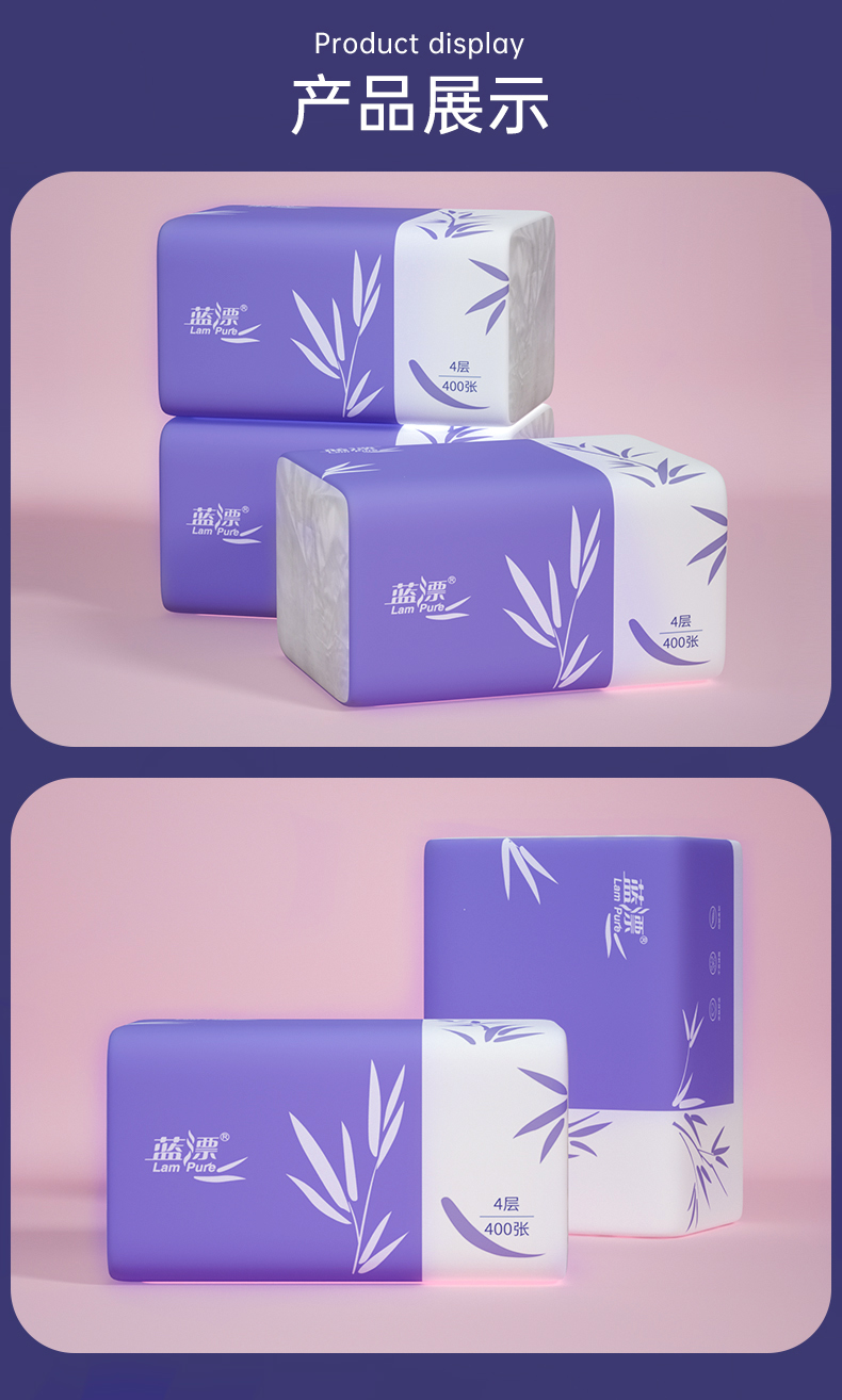 蓝漂LP-29282-A白色抽纸18包装(紫色竹叶) 拿铁色