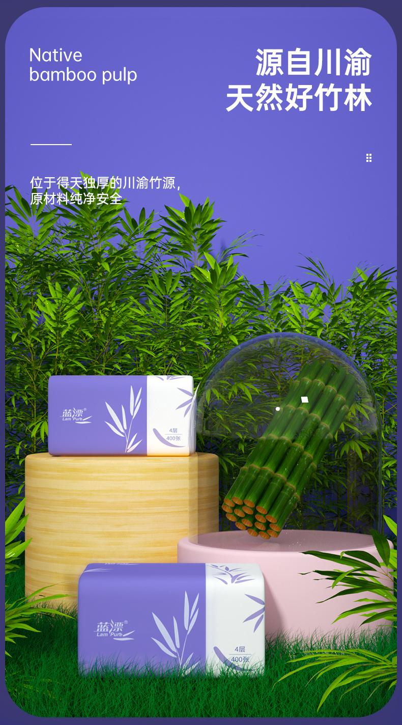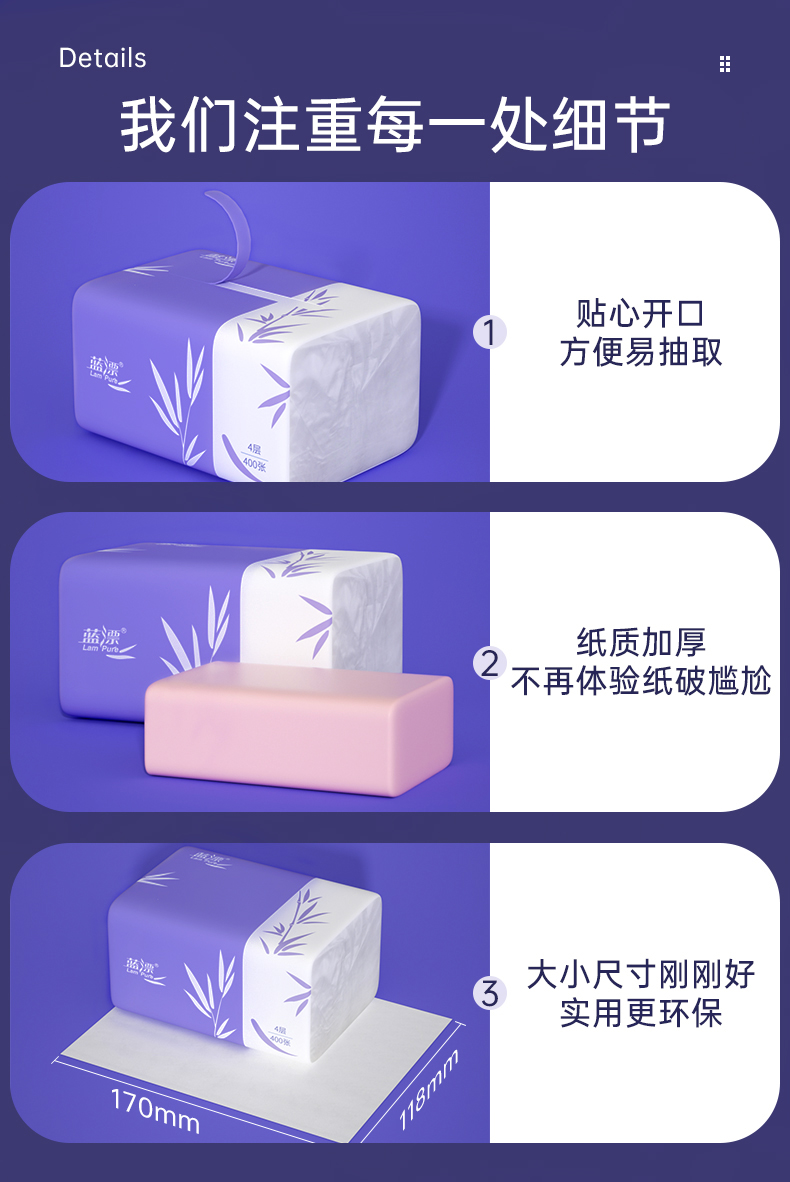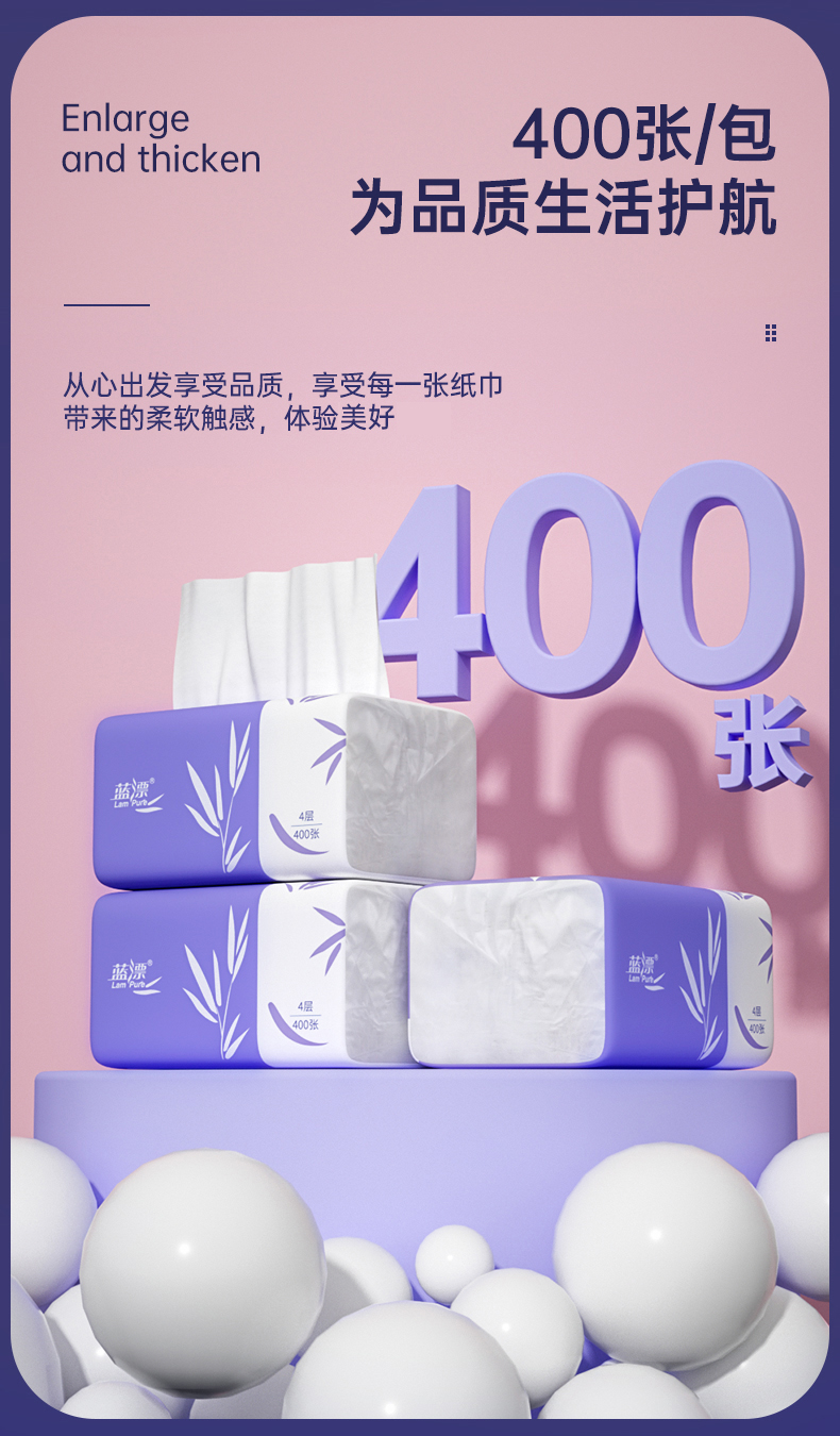 蓝漂LP-29282-A白色抽纸18包装(紫色竹叶) 拿铁色