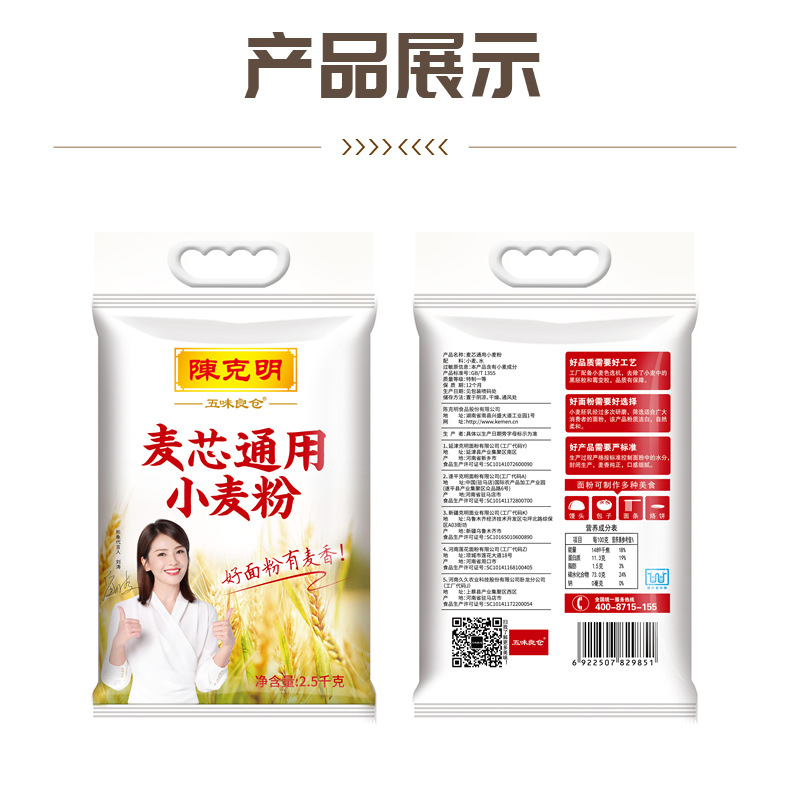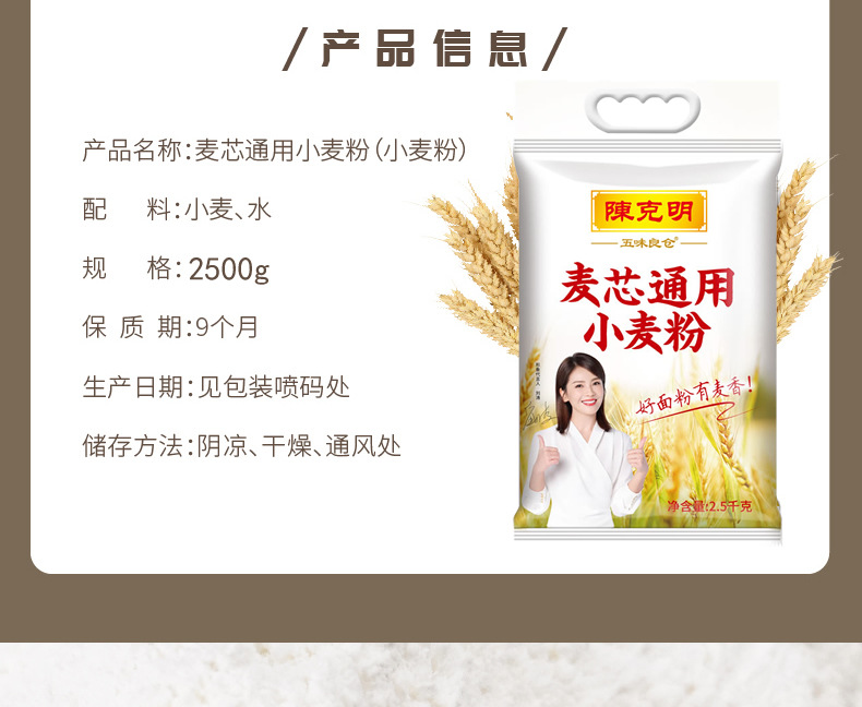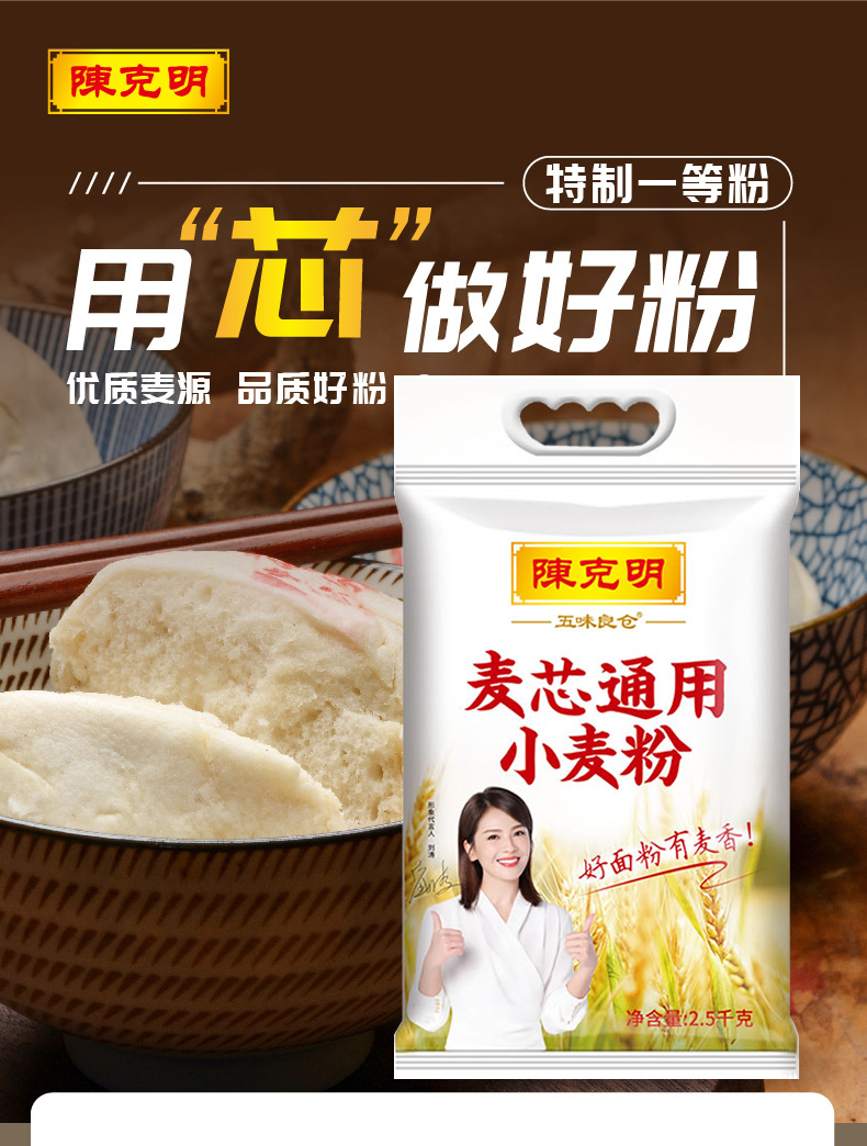 陈克明五味良仓面粉 麦芯通用小麦粉 2.5kg*1袋/5斤 馒头包子面条烙饼 黄色