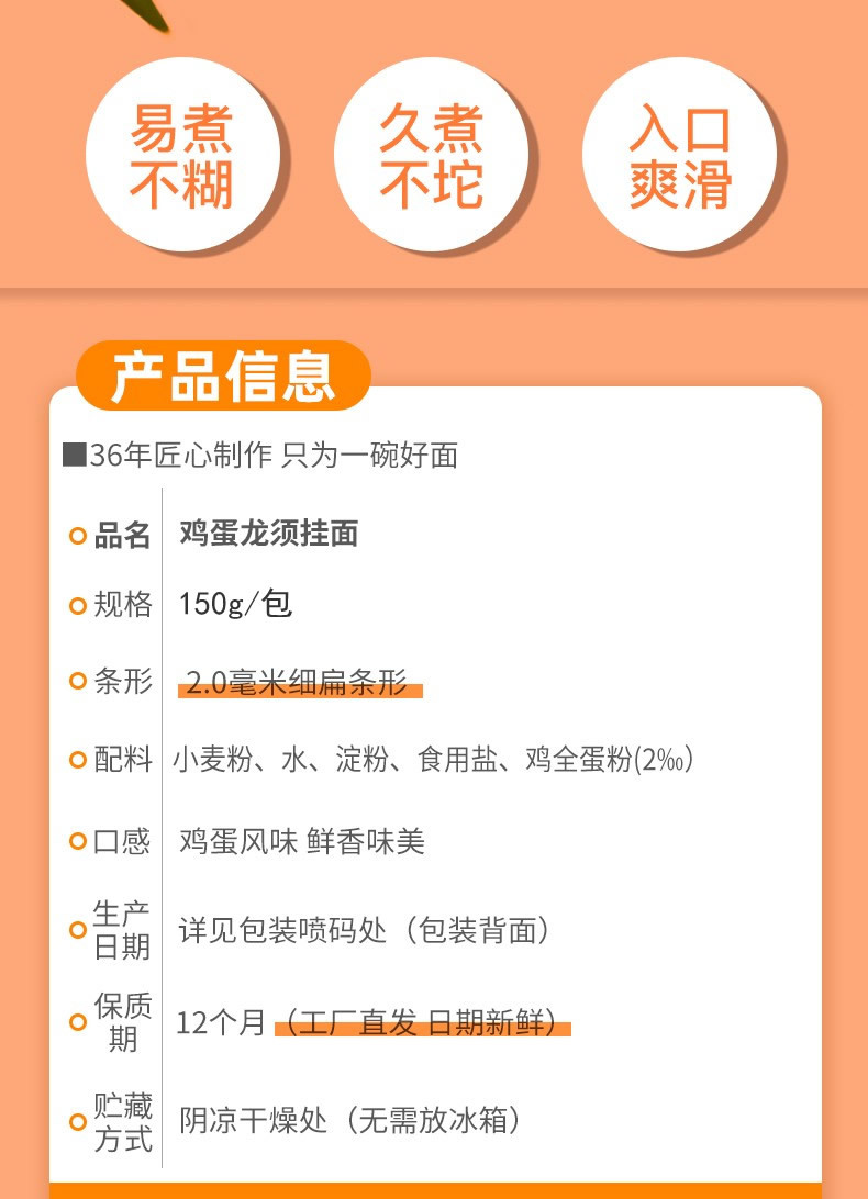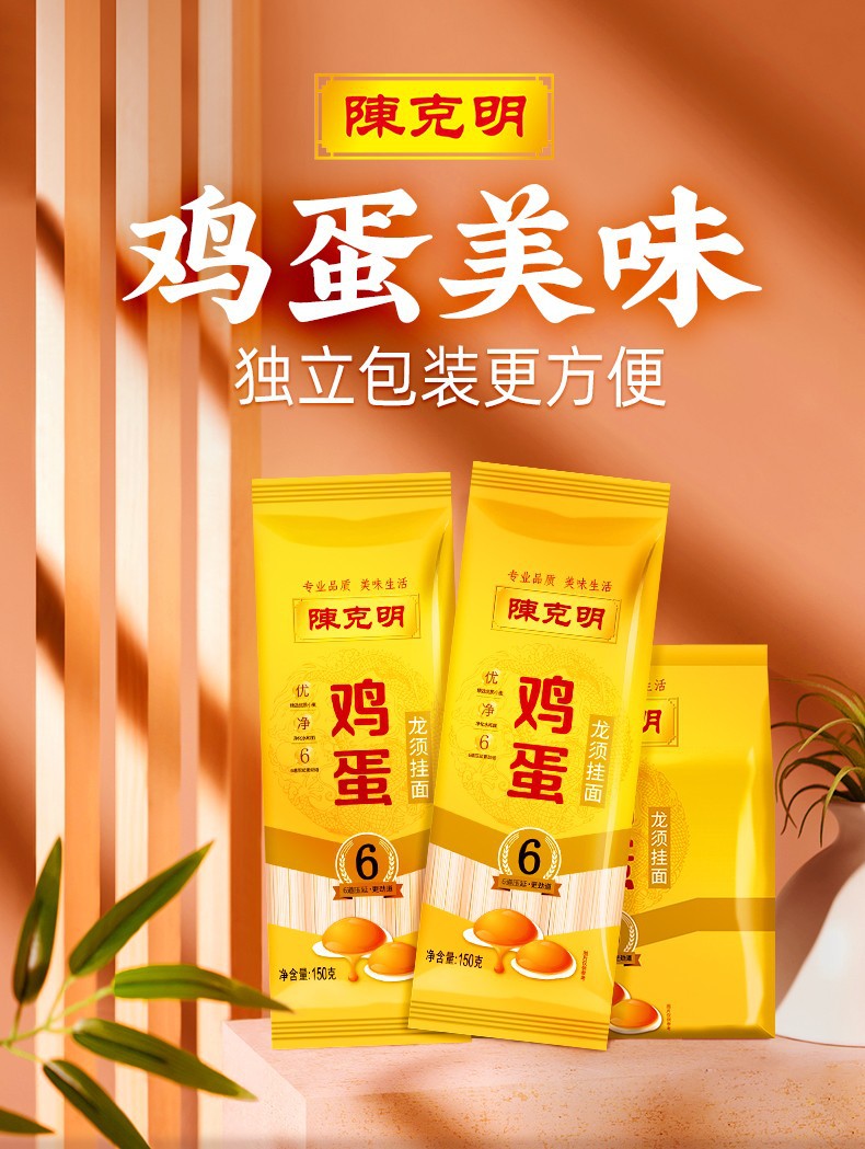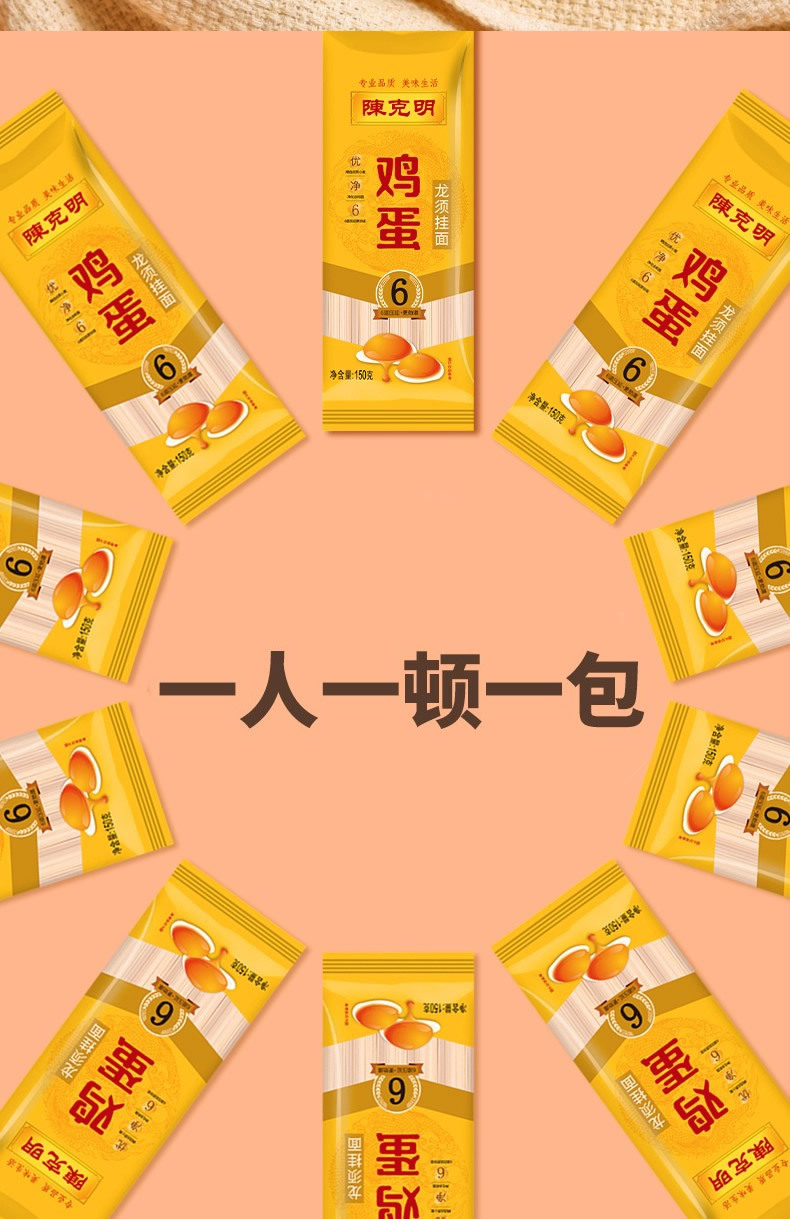 陈克明面条 鸡蛋龙须挂面 150g*50包/15斤 扁细面条 方便快捷 一餐1小包 黄色