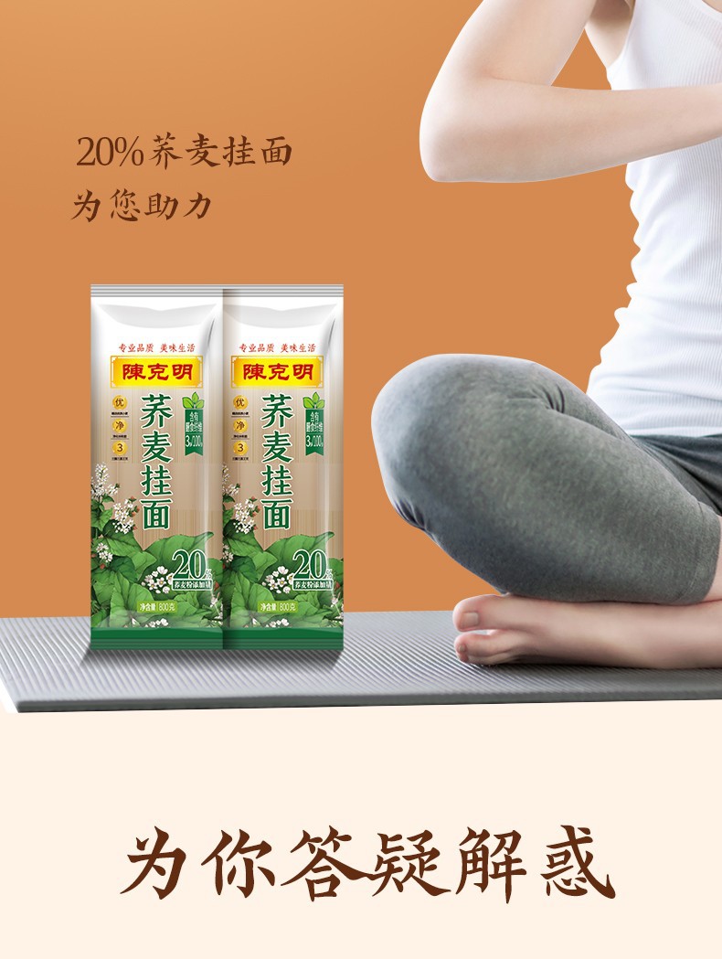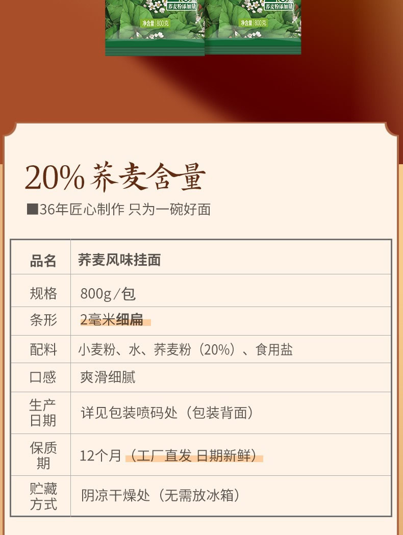陈克明面条 荞麦风味挂面 800g*3包/2.4斤 20%荞麦面 高饱腹 绿色