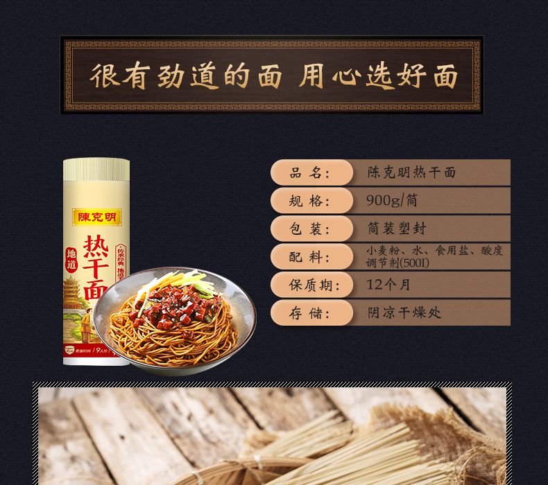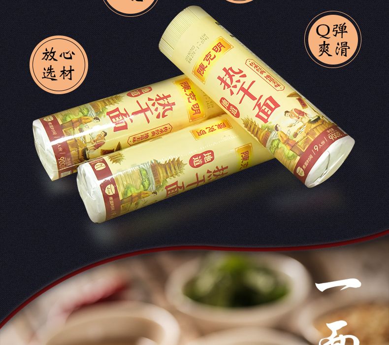 陈克明面条 地道风味热干面 900g*3筒/5.4斤 正宗武汉风味热干面 褐色