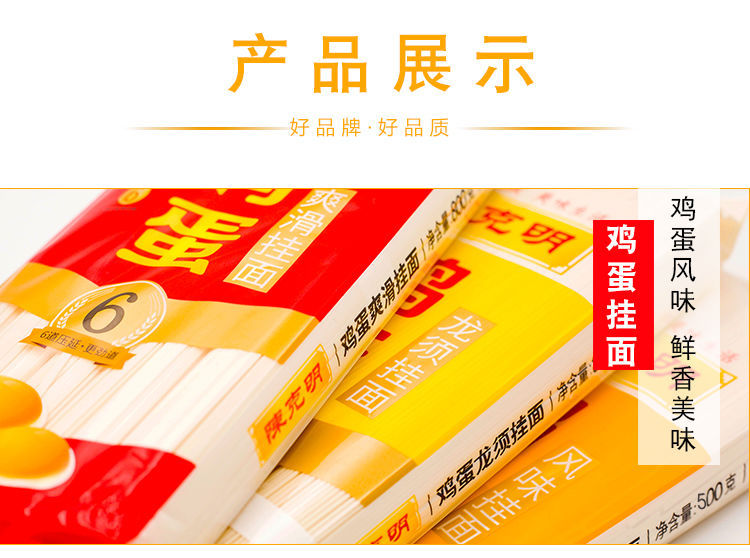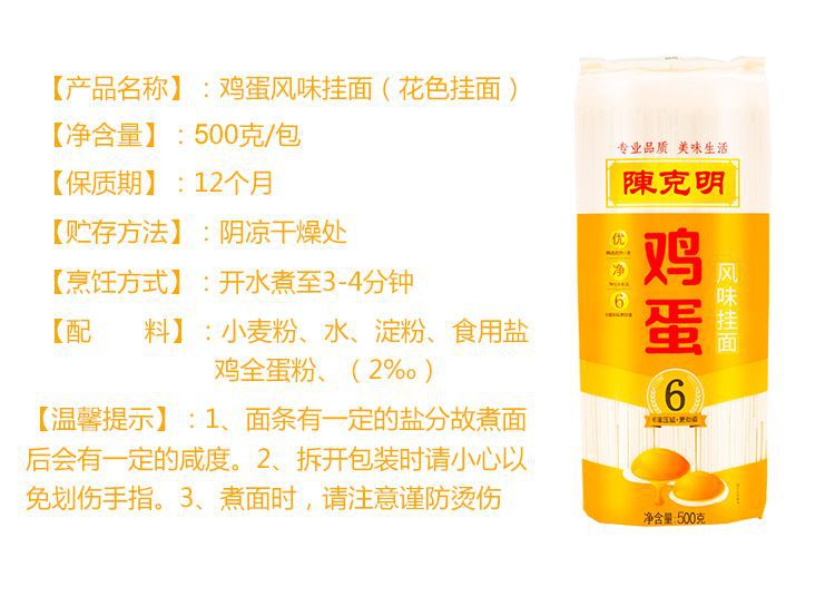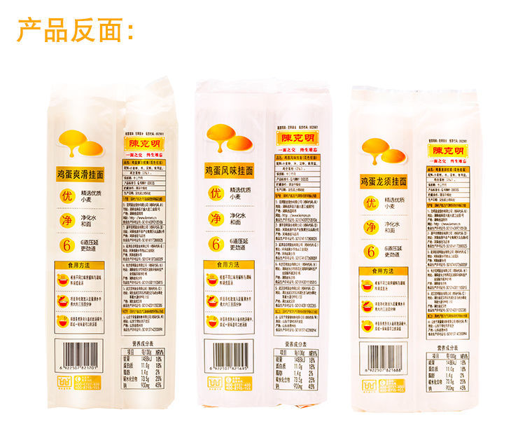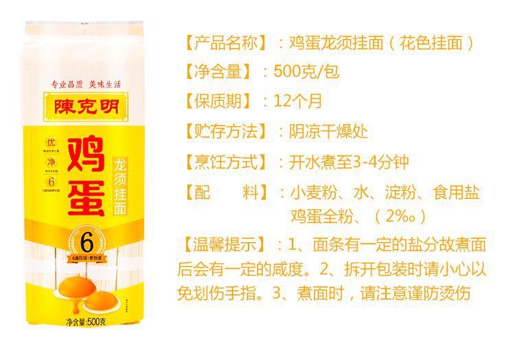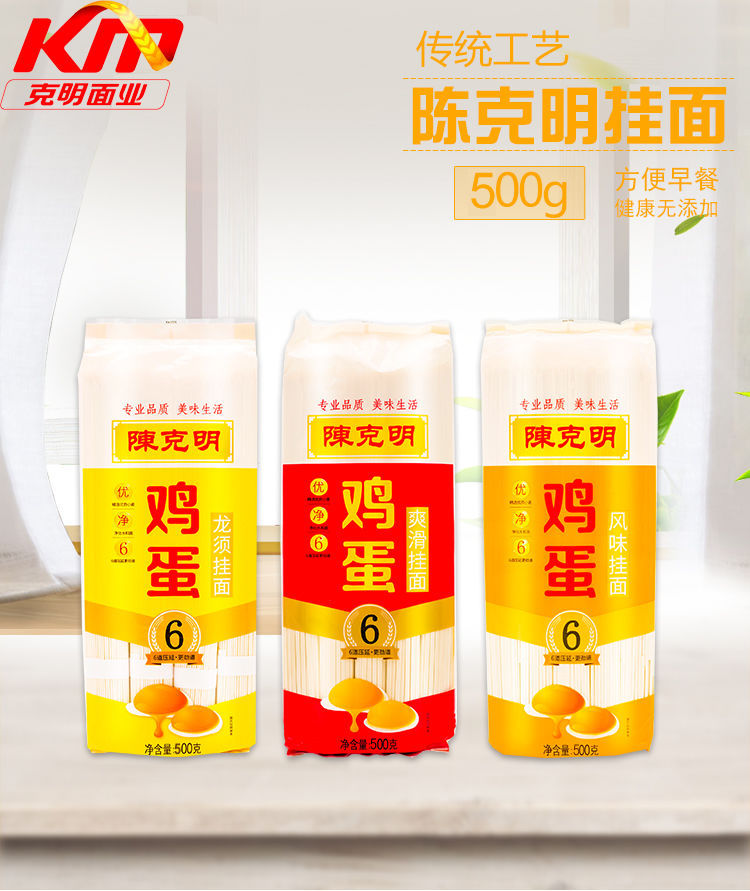 陈克明面条 鸡蛋龙须+鸡蛋风味+鸡蛋爽滑挂面 500g*3包/3斤 圆细宽三种条形 红色