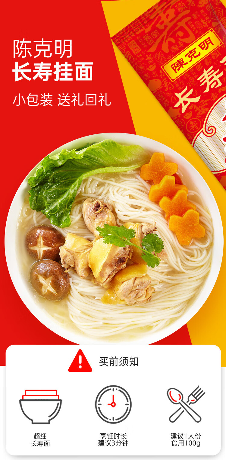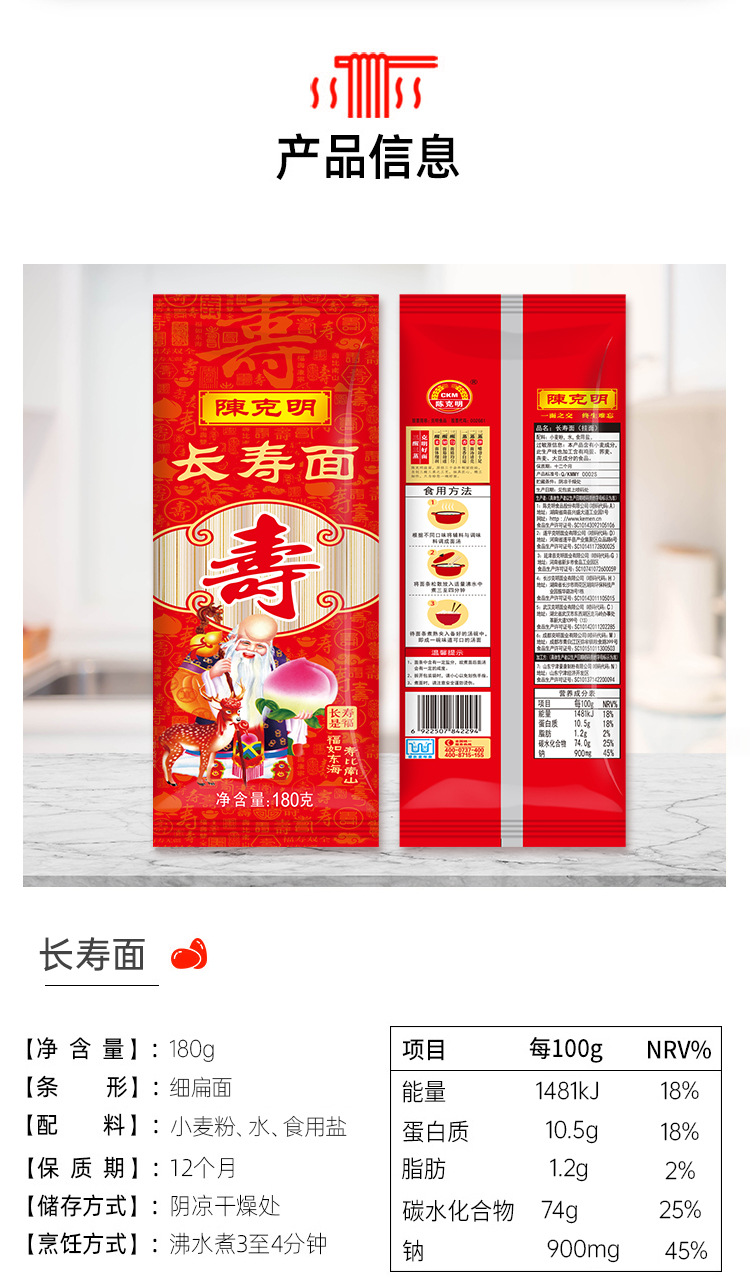 陈克明 CKM083 180g*10包 长寿面 红色(单位:组)