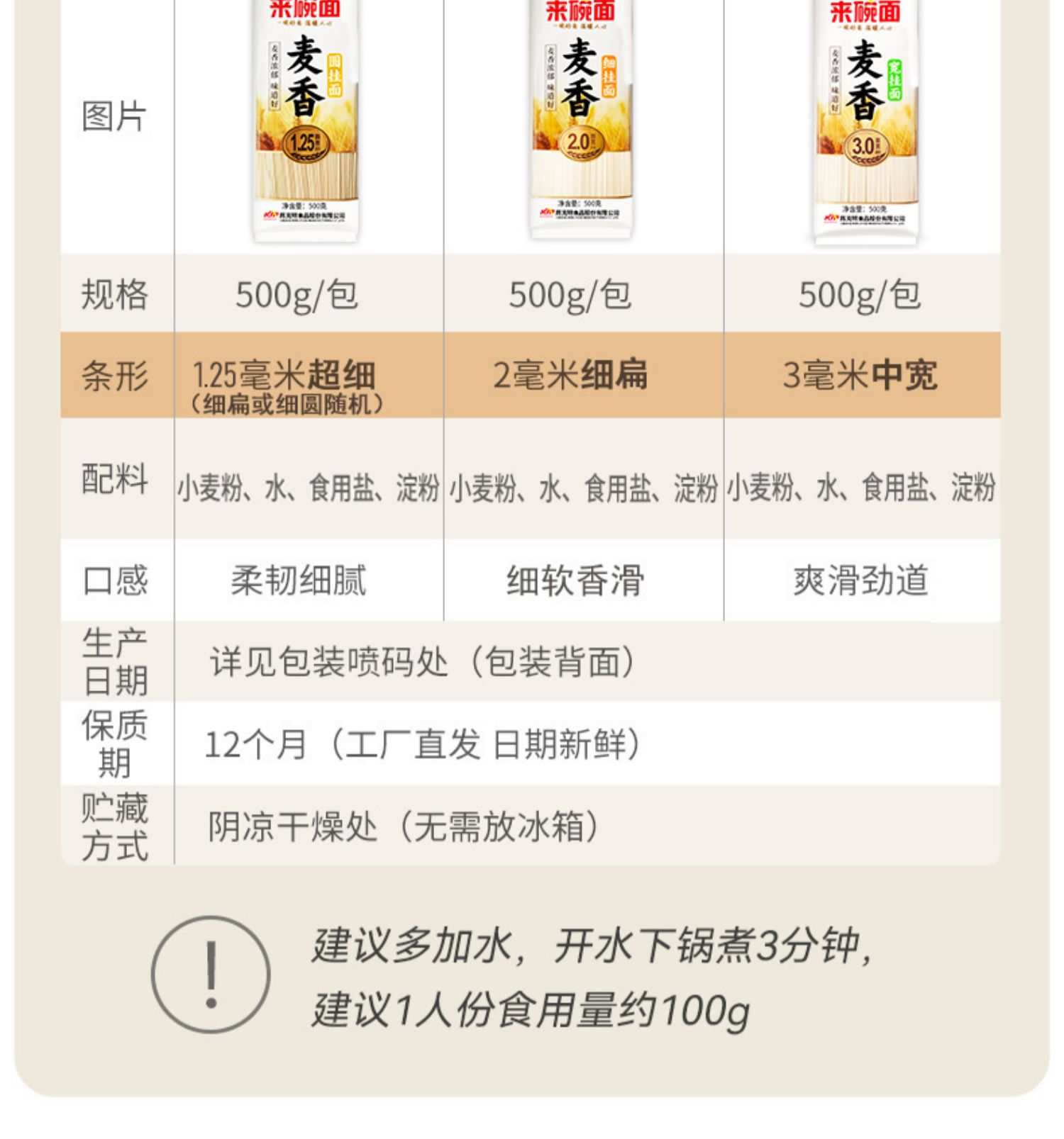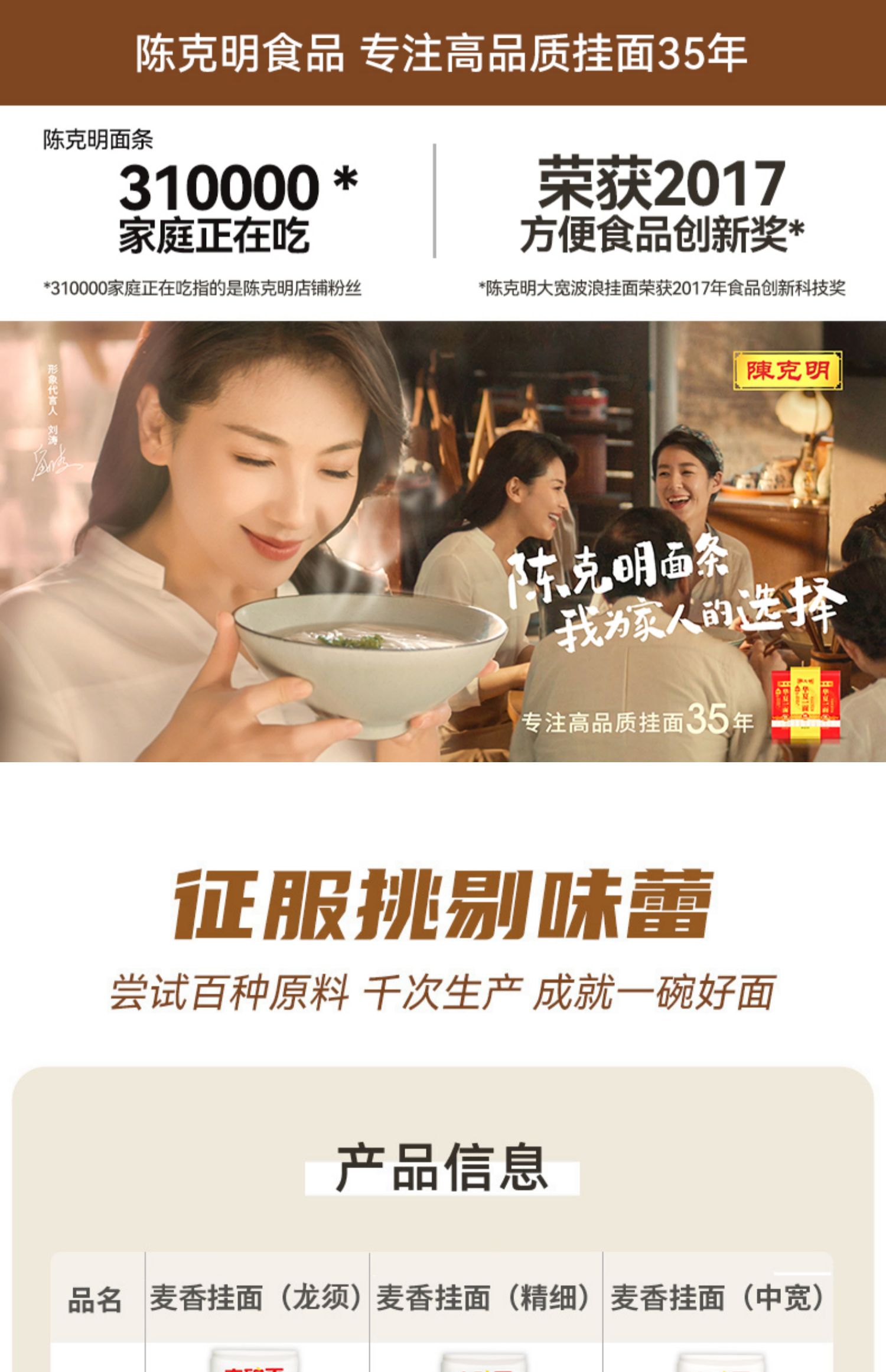 陈克明 来碗面 麦香圆挂面+细挂面+宽挂面 500g*3包/3斤 三种条形 (单位:包) 白色