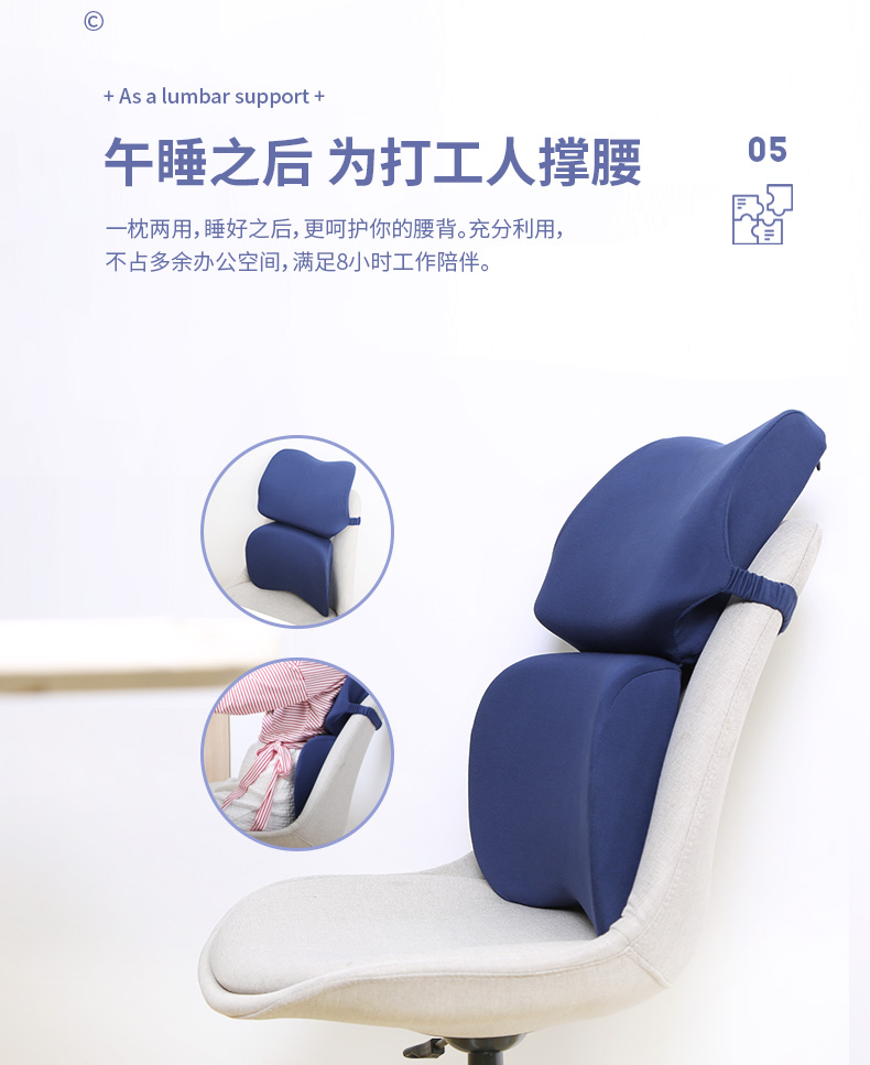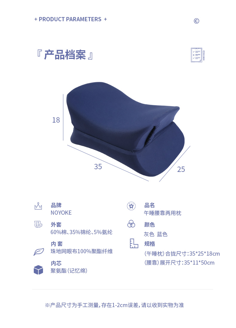 诺伊曼 noyoke 午睡腰靠两用枕 35*25*18 头枕腰靠 S0811 藏蓝色