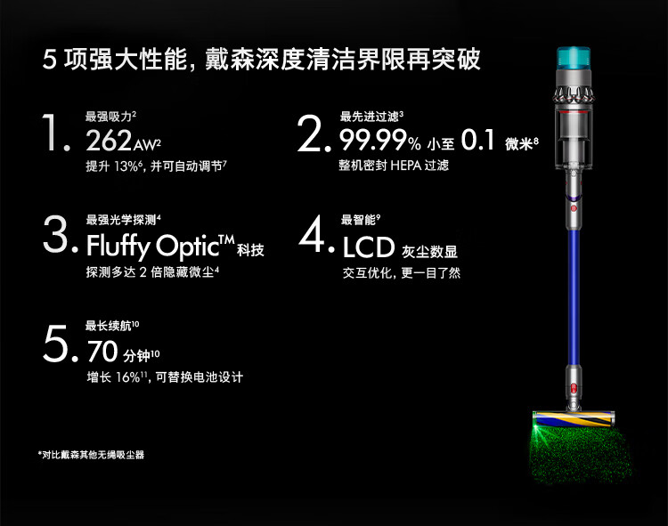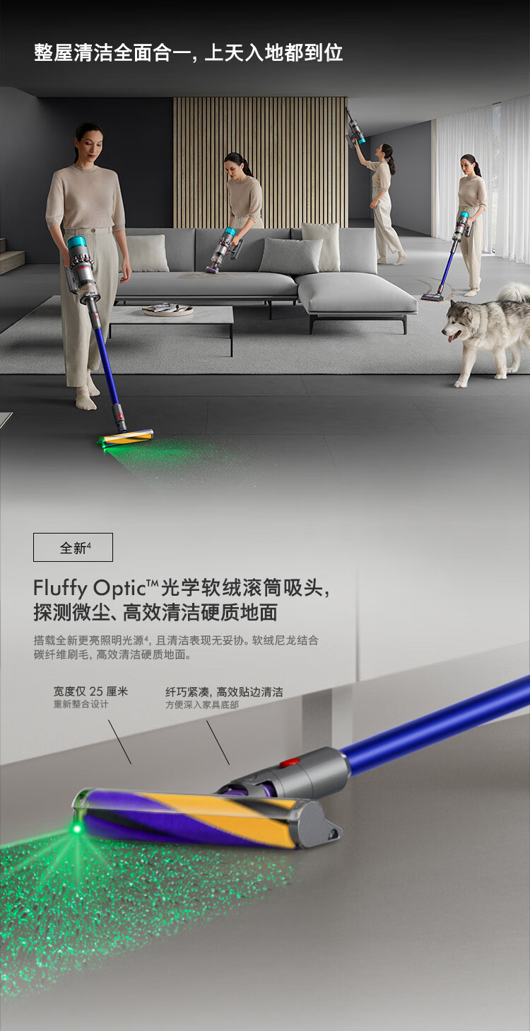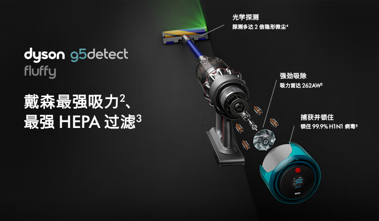 戴森(DYSON)G5 Detect Fluffy智能无绳手持吸尘器家用除螨 地毯 宠物 台 镍色