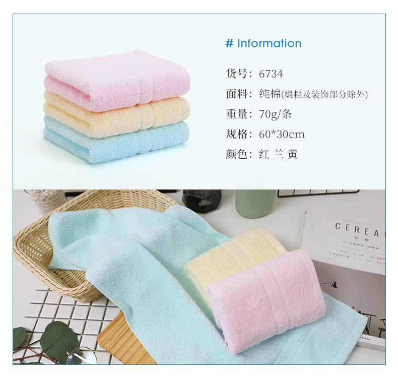 洁丽雅(Grace)毛巾家纺 纯棉2条装素色个性简约洗脸面巾6734(单位:条) 黄+蓝