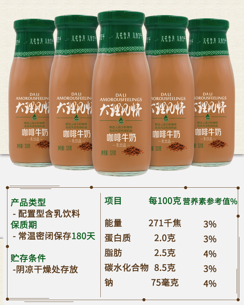 欧亚大理风情咖啡牛奶饮品 320ml*10瓶 拿铁色