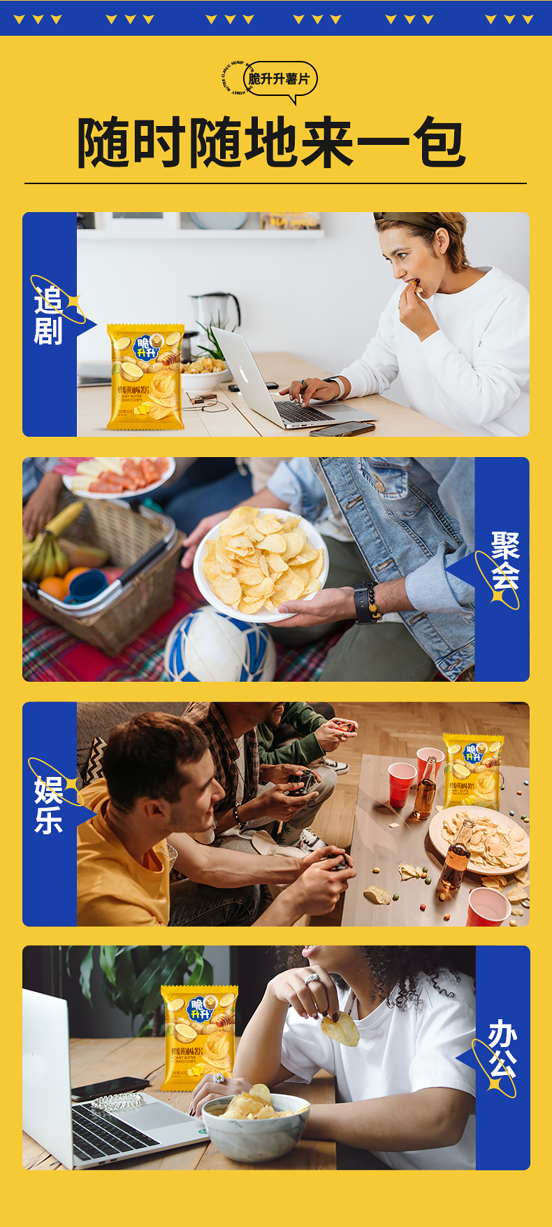 脆升升蜂蜜黄油味薯片60g*5袋 黄色