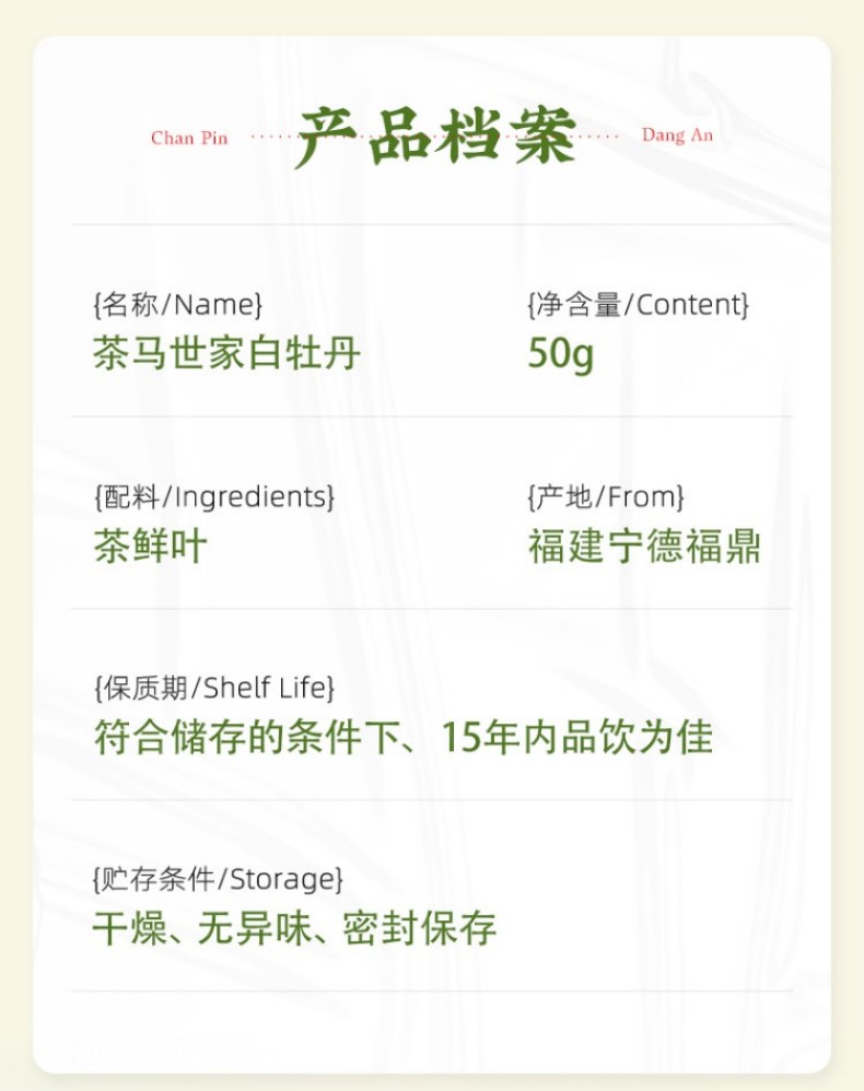 茶马世家 白茶 50g*1盒 白牡丹 白色(单位:盒)