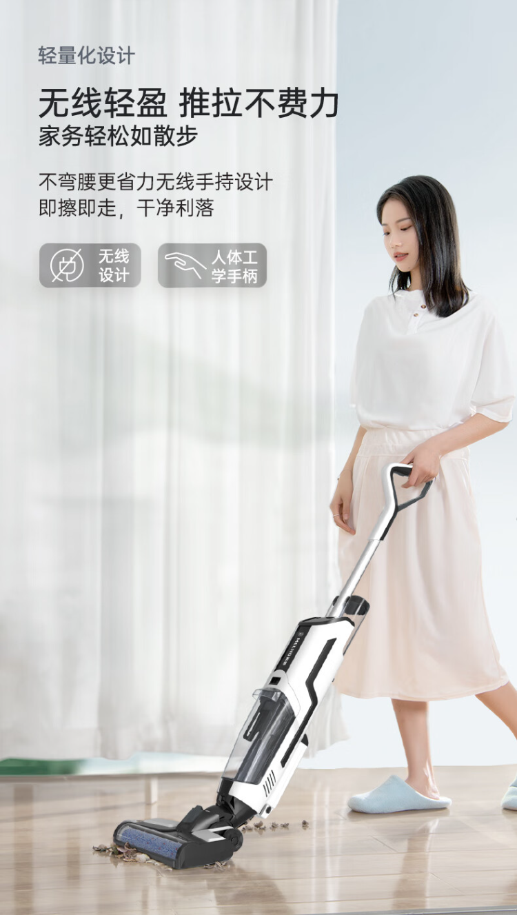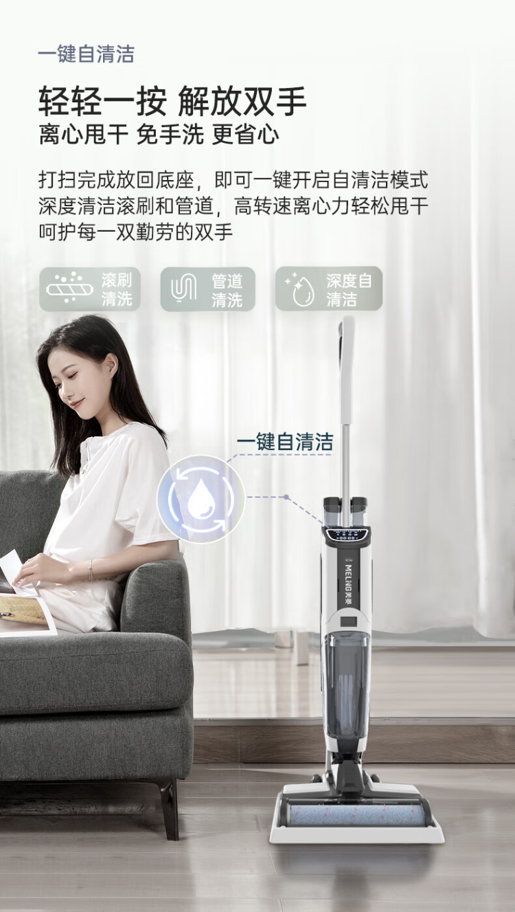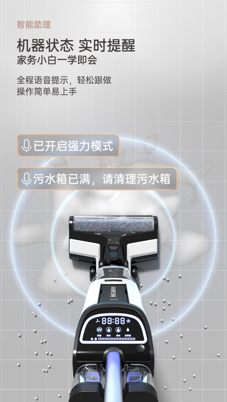 美菱(MeiLing)无线智能洗地机XM-7吸拖洗智能一体机家用扫地机擦地机拖地机手持吸尘器 灰色