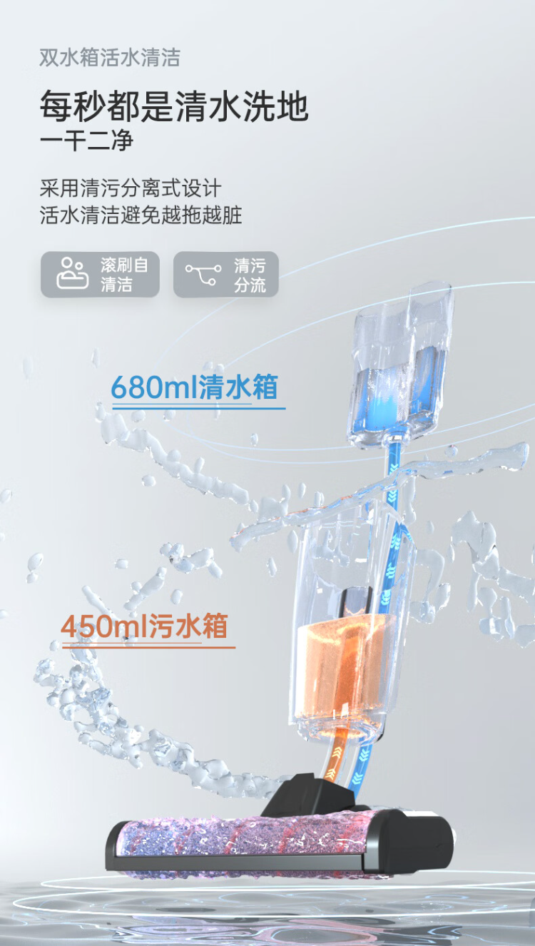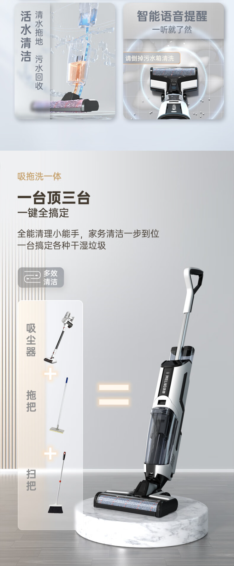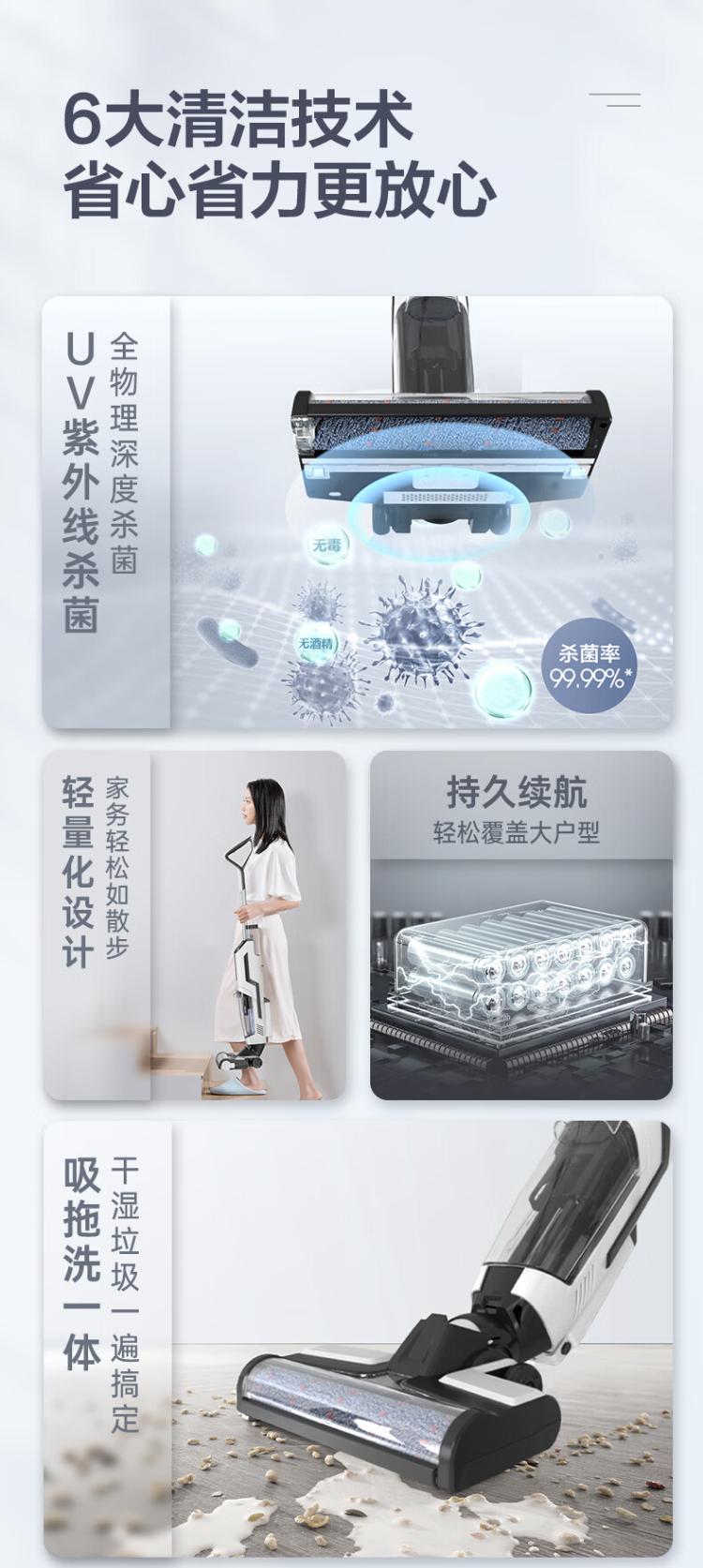 美菱(MeiLing)无线智能洗地机XM-7吸拖洗智能一体机家用扫地机擦地机拖地机手持吸尘器 灰色