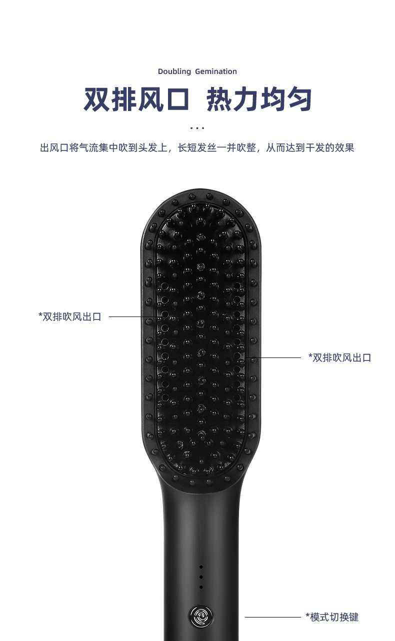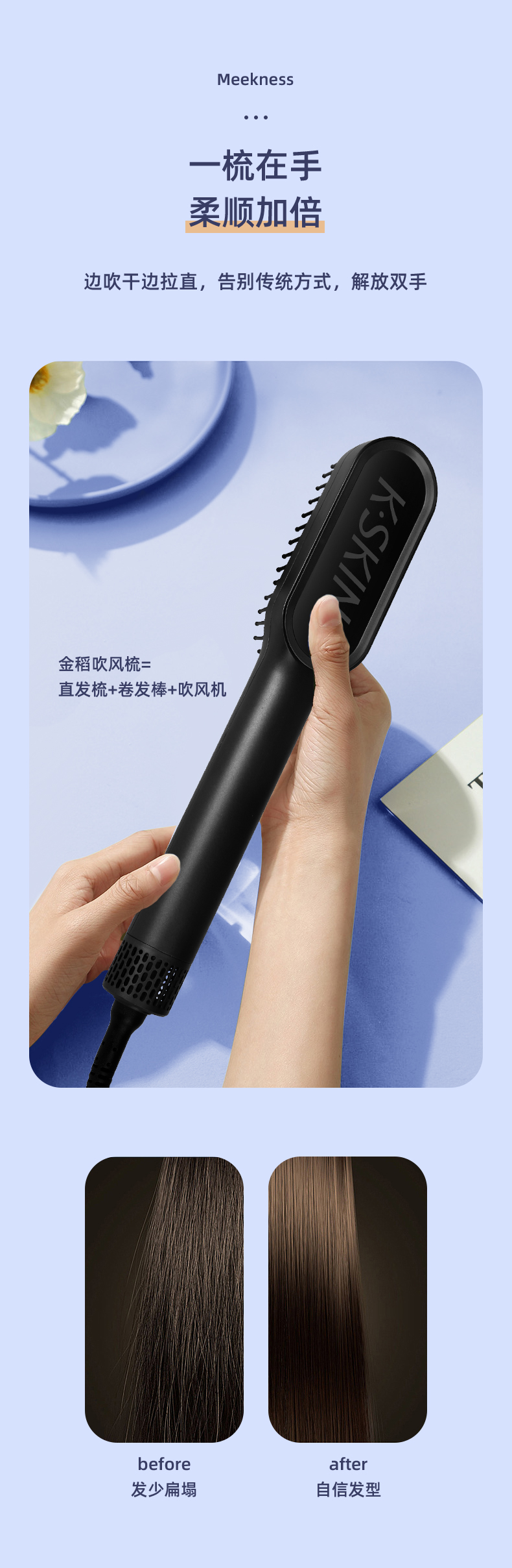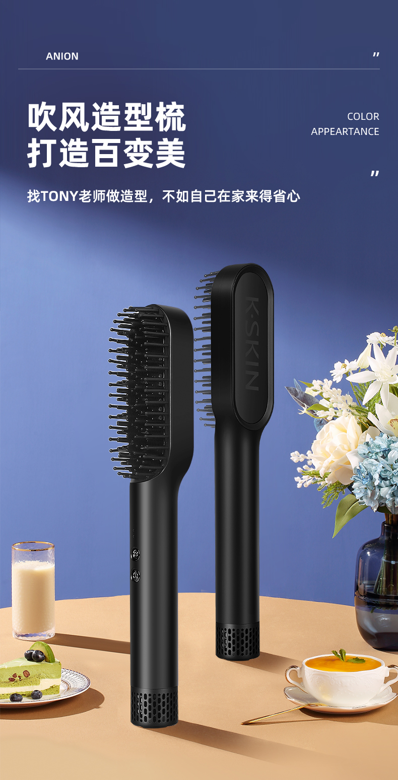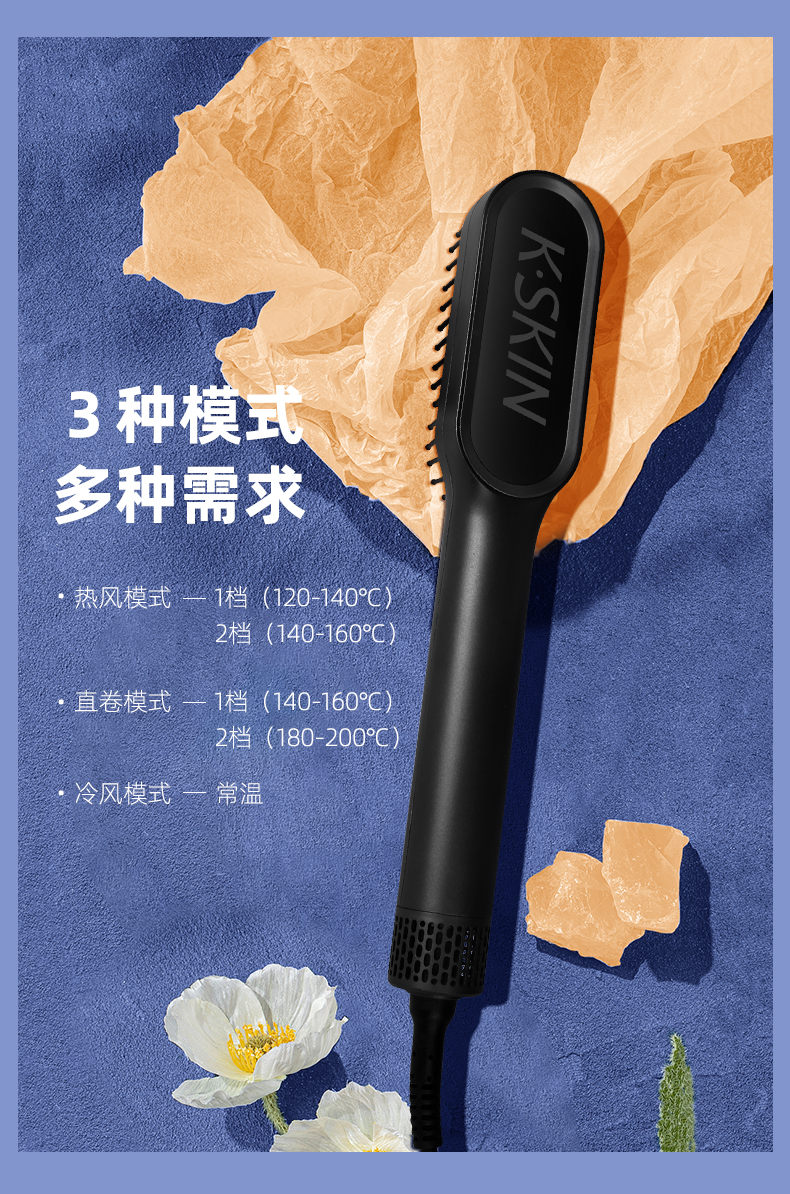 金稻 吹风梳冷热风梳干湿两用造型梳一梳直电动直发梳不伤发电梳子KD381(单位:台) 曜石黑