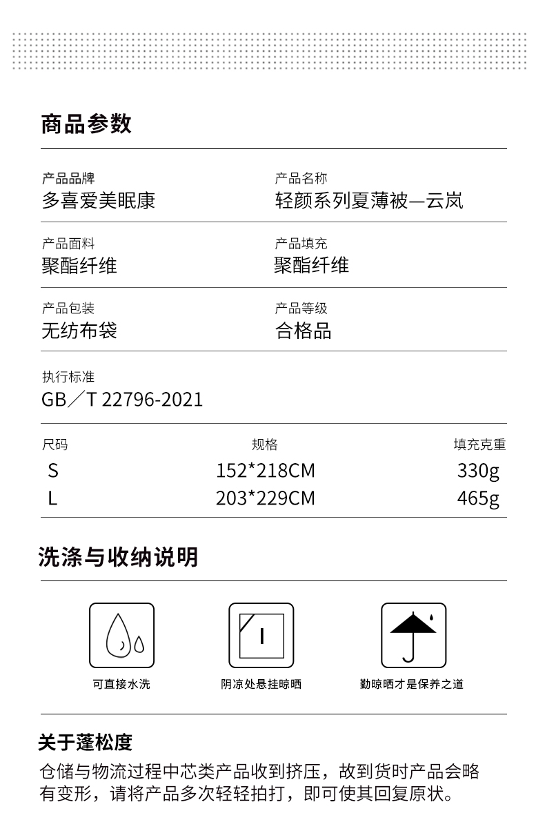 多喜爱-轻颜系列夏被(云岚)(单位:床) 绿色 203*229cm