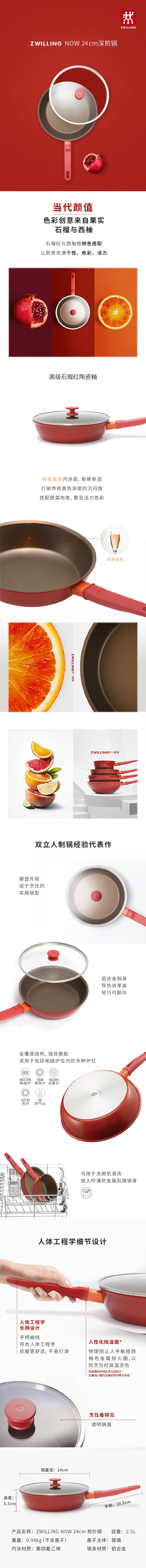 双立人Now 24cm多用深煎锅平底锅不粘锅+小硅胶铲 (单位:套) 炫橙色