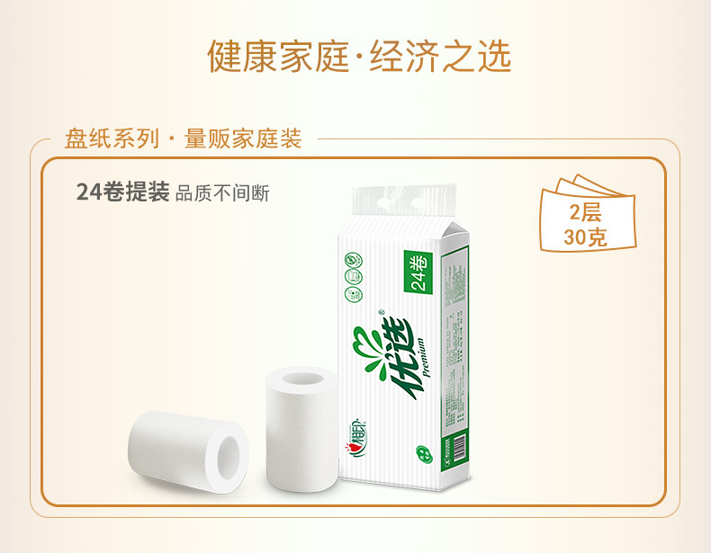 心相印BT30商用优选系列二层卷筒纸24粒 白色