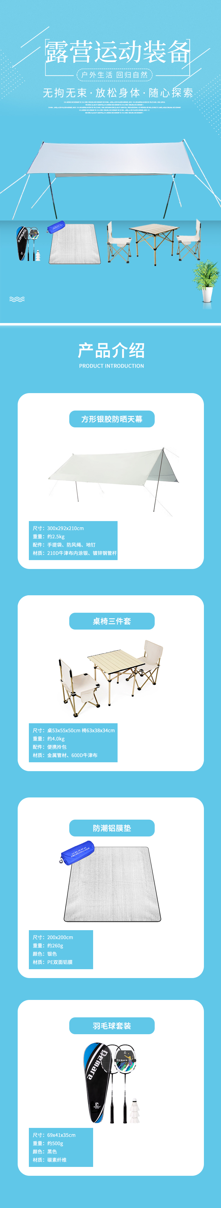 酷龙达(Coloda) 家庭出游运动套装 天幕+桌椅套装+野餐垫+羽毛球