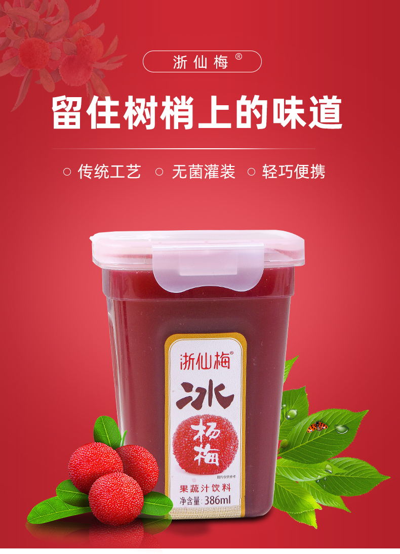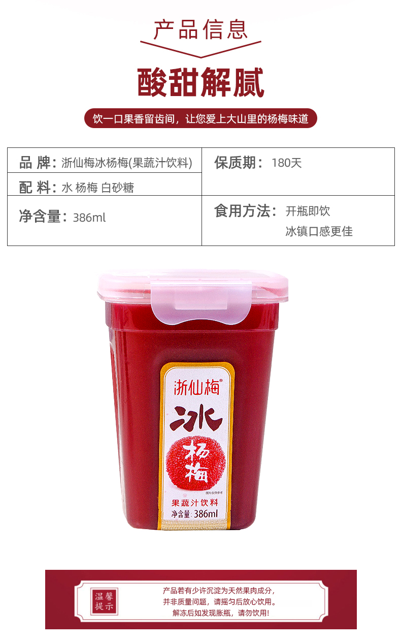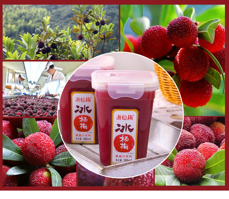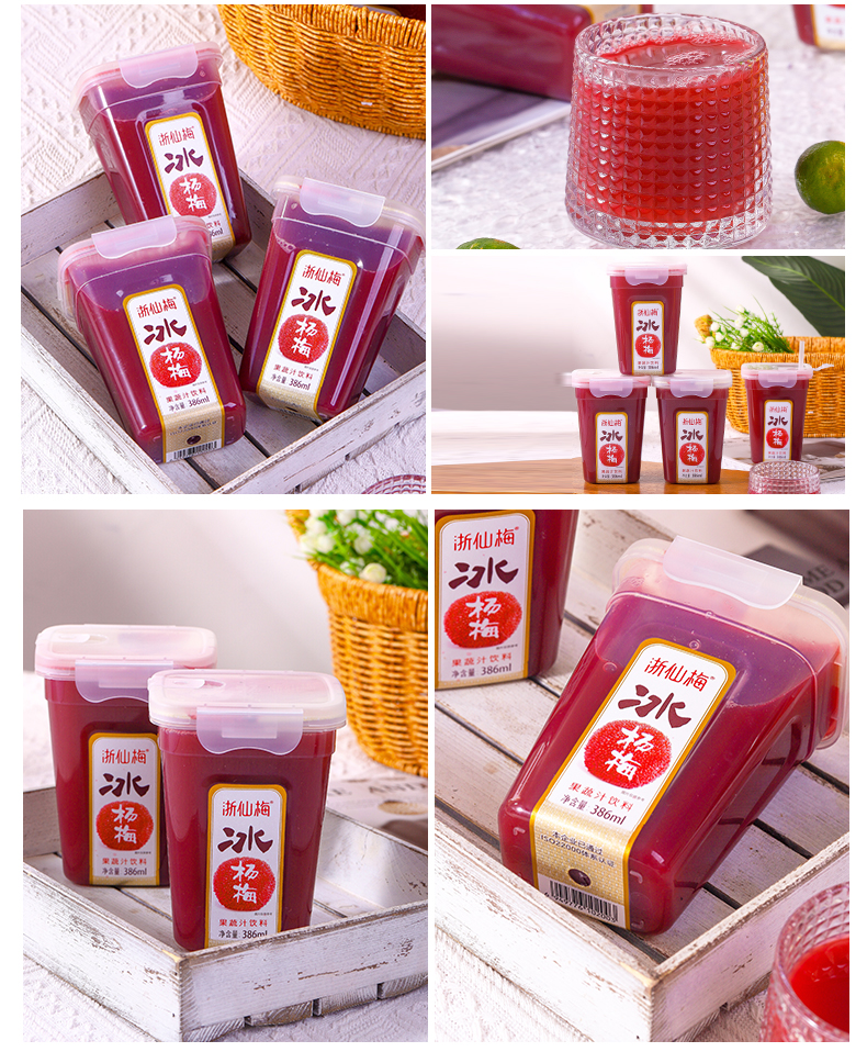 浙仙梅杨梅汁386ml*6瓶 莓果色