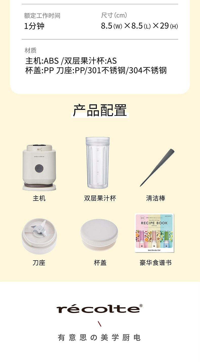recolte(丽克特)RSB-4迷你果汁机 300ml(单位:台) 香草白