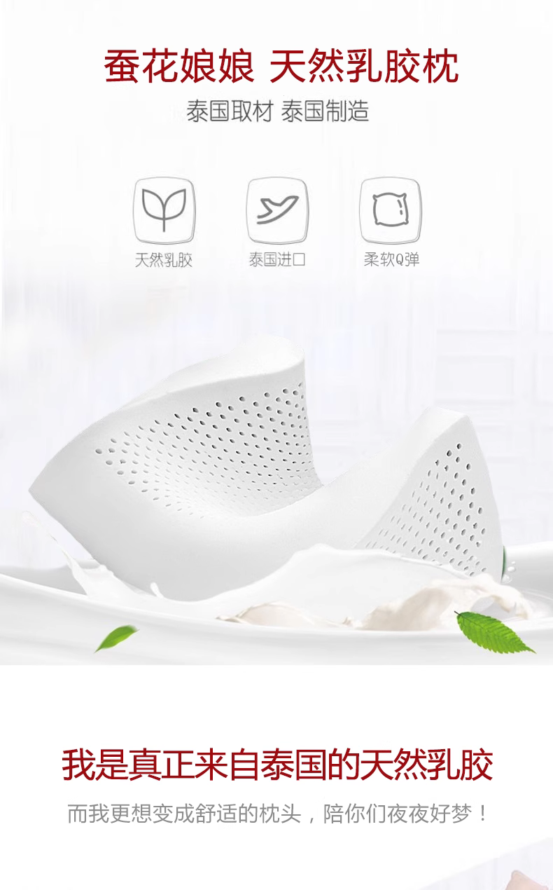 蚕花娘娘乳胶枕泰国原料乳胶枕芯单只装 狼牙乳胶枕 白色