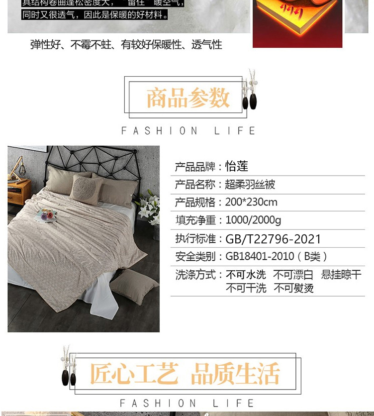 怡莲YL-X816超柔羽丝被冬季厚被保暖透气舒适双人床200*230CM净填充4斤(单位:床) 咖色格子