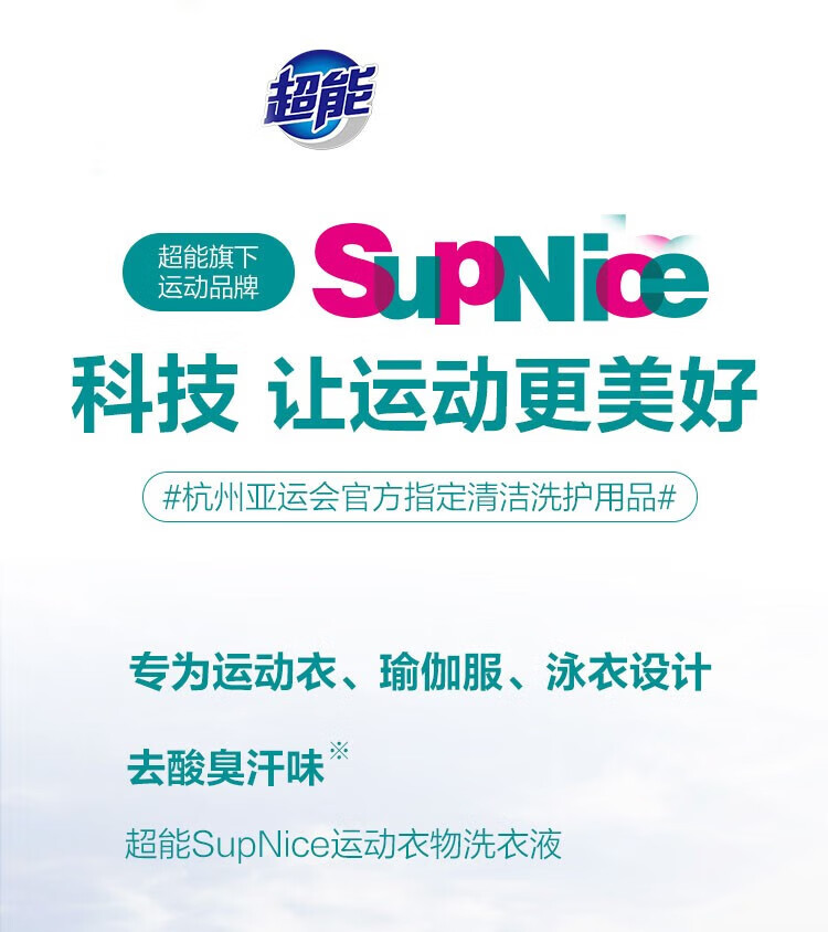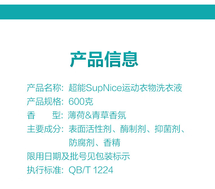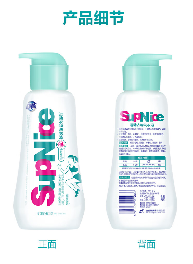 超能 supnice运动衣物 洗衣液 600g 单瓶装 (单位: 瓶) 白色